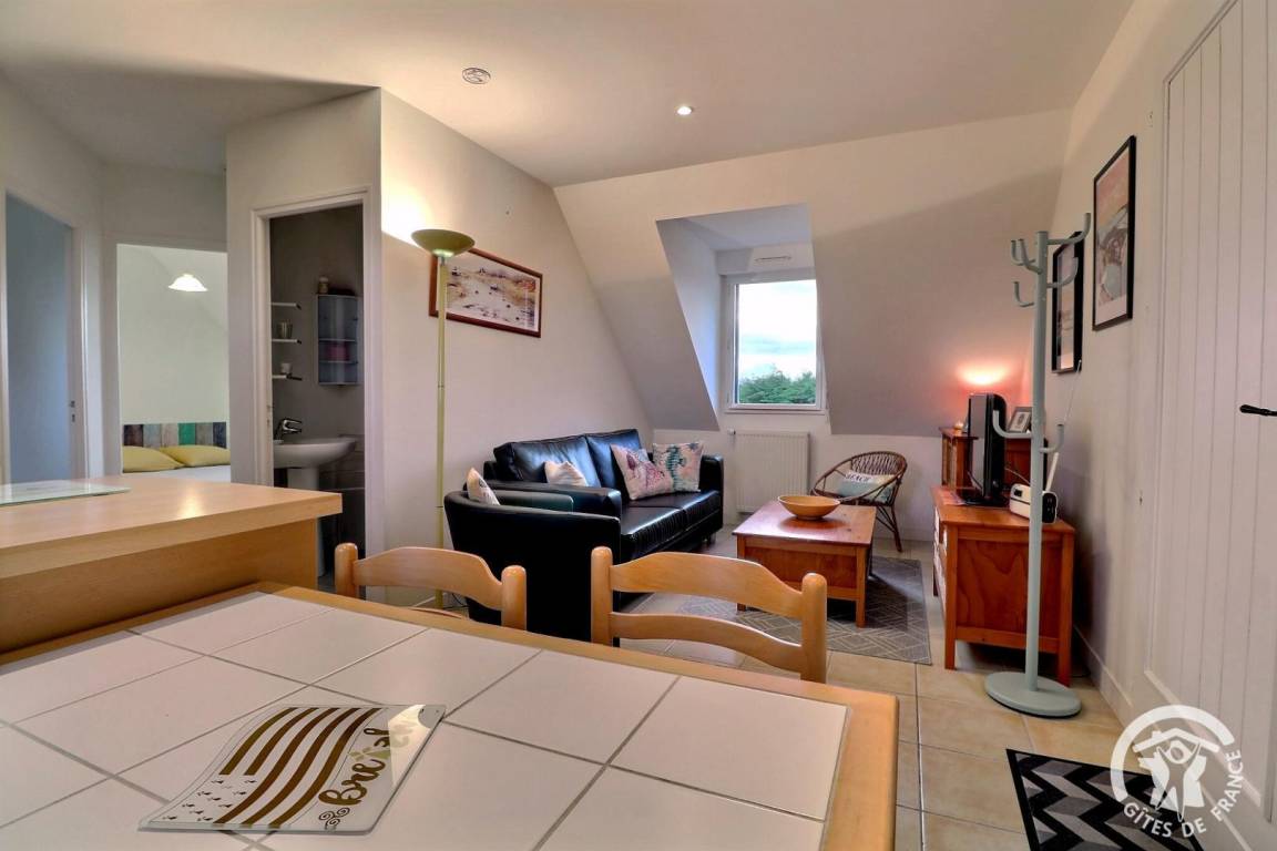 „Gîte très bien situé à 1/4h à pied de la plage et du GR. Très propre et très bien équipé, il ne manque rien. Accueil sympathique et arrangeant. Même si le gîte est au premier étage de la maison des propriétaires, on ne se sent pas chez eux parce qu’il est au-dessus de leur garage et qu’il y a une entrée indépendante.“