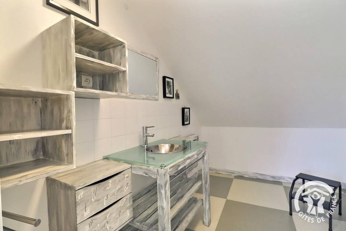 „Séjour très agréable, gîte bien placé à 10 mn de la plage par un petit chemin, au calme. Il faut prendre la voiture pour faire des courses mais c'est à 5 mn. Très joliment décoré (bravo pour les broderies au point de croix !) il manque juste quelques petits consommables toujours utiles, une dosette de café pour l'arrivée (on s'est trompé en les achetant, on ne connaissait pas la machine) ou une éponge dans la salle de bain. En revanche merci pour la bouteille de cidre bien appréciée ! Globalement très sympa“