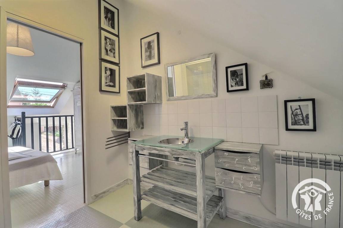 „Surprenant avec l escalier pentu, le bac de douche trop haut qui demande de l’enjamber en entrant et en sortant, la télévision qui n'avait pas toutes les chaînes mais intervention 3 jours après notre arrivée. Location pour couples valides. Cela n’est pas mentionnée dans l annonce. Produit de vaisselle très léger. Nous ne reviendrons pas. Nous ne sommes pas exigeants mais ces points nous ont gênés.“