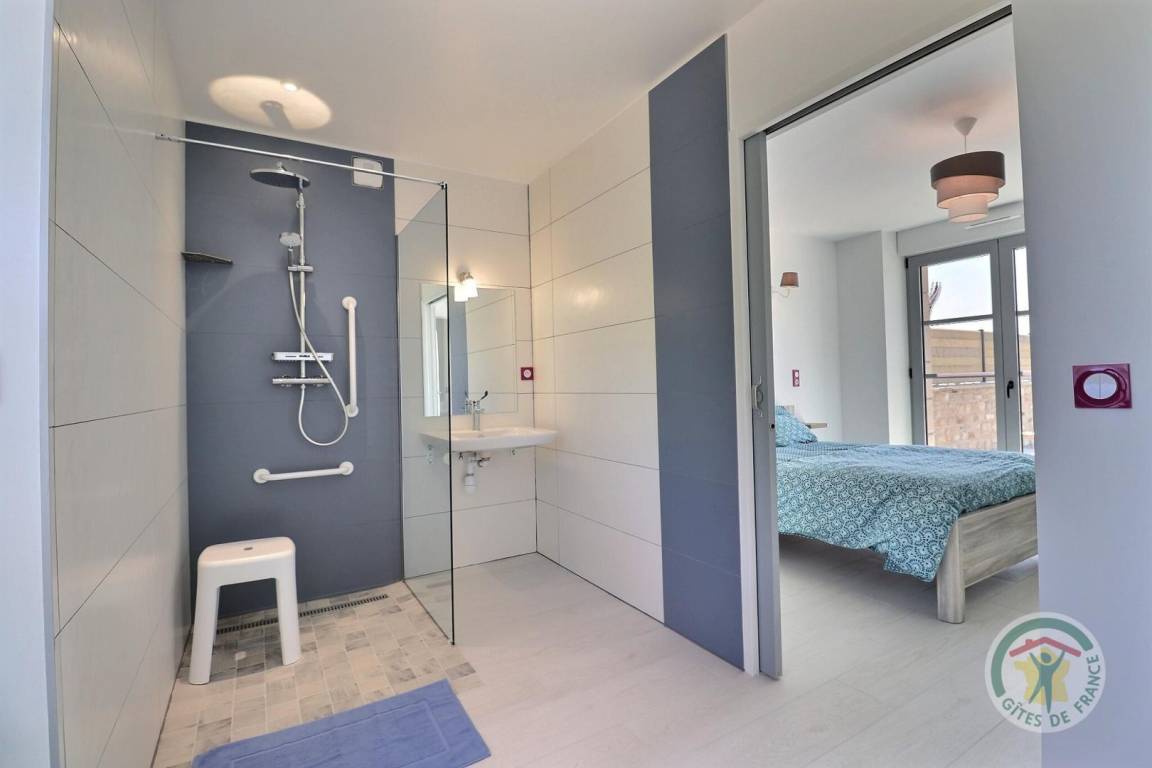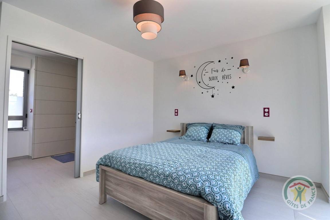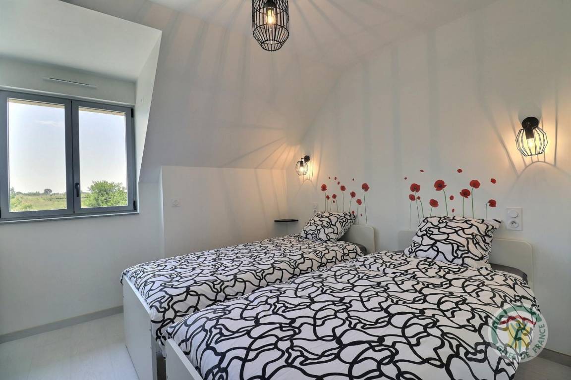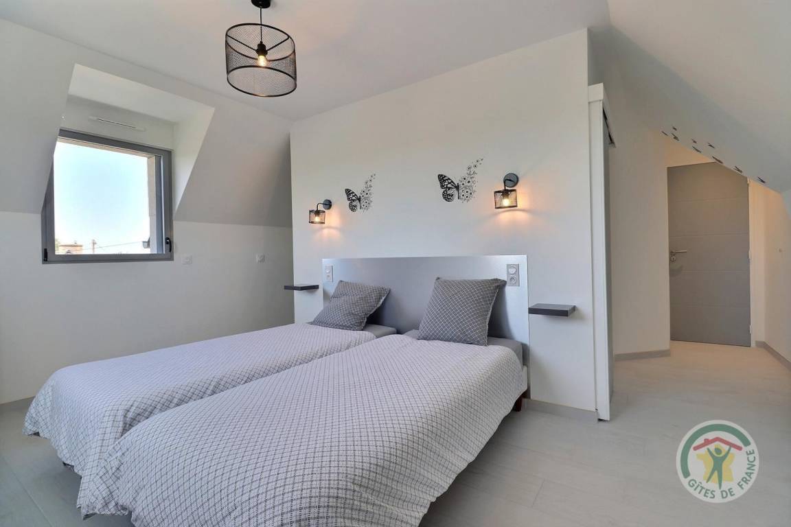 „Wir haben hier eine sehr schöne Woche verbracht - das Haus ist wie neu, in sehr gutem Zustand und sehr sauber. Die Küche ist sehr gut ausgestattet, alles (Teller, Besteck, …) in hoher Anzahl. Geschirrspüler, Waschmaschine, BBQ vorhanden. Ein barrierefreies Zimmer in EG, vier geräumige im OG, jeweils mit eigenem Bad (nur bei einem Zimmer war das Klo getrennt, im Flur). Genug Abstellflächen. Großer Parkplatz, dazu Garage, großer Garten. 10 min zu Fuß vom nächsten Strand. 2 km vom Stadtzentrum (Bäcker, Geschäfte, Metzger…).Eine sehr angenehme Überraschung von der Vermieterin (leckere Crepes).Auf jeden Fall empfehlenswert und hoffentlich mal auf Wiedersehen!“