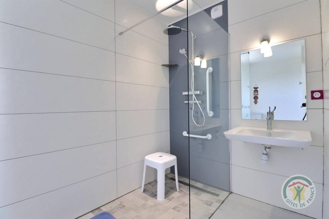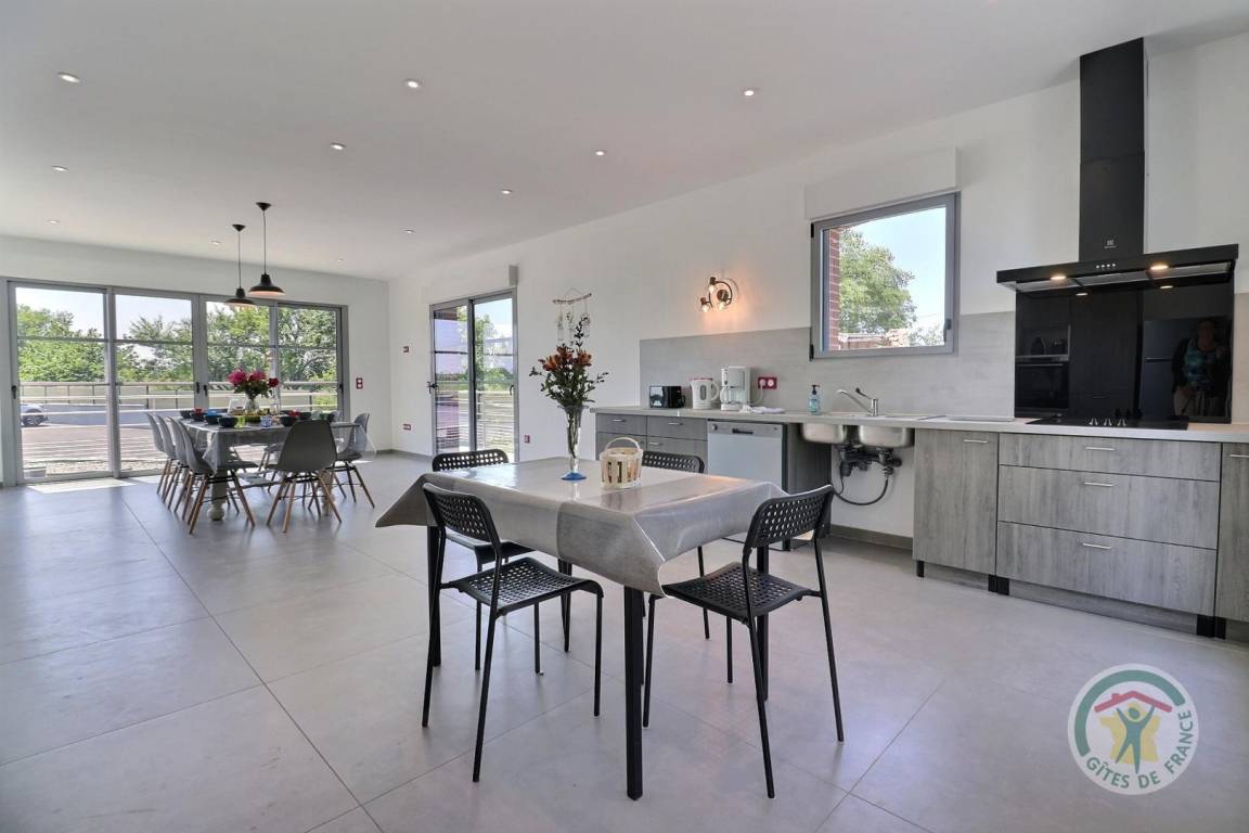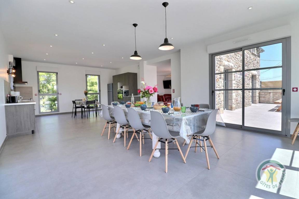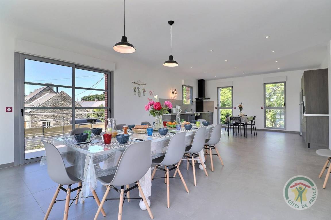 „Maison spacieuse. Nous avons particulièrement apprécié que chaque chambre ait sa salle de bains et ses toilettes ainsi que le garage. La vaisselle et les ustensiles de cuisine sont très complets. (un petit robot rape électrique completerait avantageusement ce qui est déjà en place) La pièce à vivre est très spacieuse et lumineuse, un peu sonore. Merci à notre hôte de nous avoir fait découvrir ses délicieuses crêpes. La maison est située en bord de route (non dérangeant en cette saison) mais le jardin est de l'autre côté. Nous reviendrons avec grand plaisir et je souhaite bon séjour à tous ceux qui viendront passer un moment dans ce gîte vraiment conçu pour une famille ou des amis.“