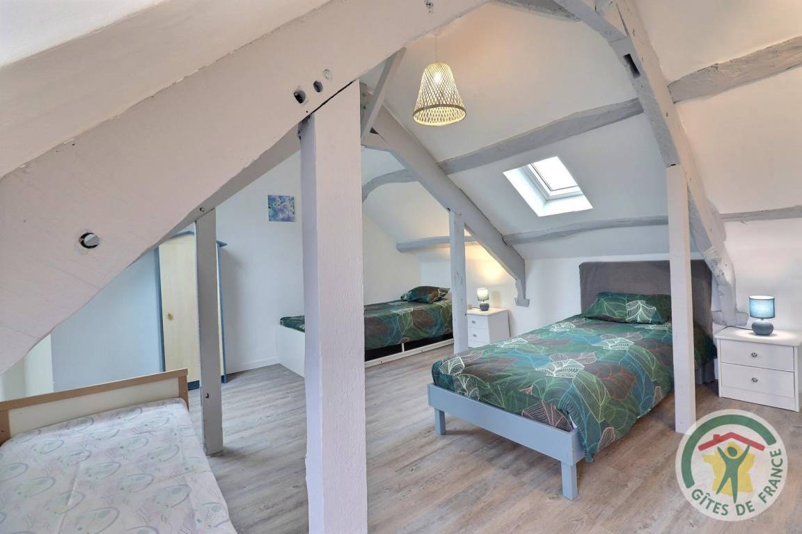 „Maison agréable à une vingtaine de minutes à pied de la plage du Guesclin ou de la plage de la Touesse donc du GR34 aussi. Nous avons été très bien accueillis par les propriétaires. Un espace de rangement supplémentaire pour la nourriture serait assez pratique et une poêle un peu haute et moins adhésive serait également appréciée Le point un peu négatif est l’escalier qui mène du 1er au 2ème étage (chambre lits 90) qui n’est vraiment pas pratique et difficile à emprunter. Extérieur très sympa !Concernant la situation le gîte est bien placé dans une rue calme à sens unique avec peu de circulation. Il est très facile et peu cher de se rendre à Saint Malo ou Cancale en bus ce qui évite de prendre son véhicule et évite les problèmes de stationnement.“
