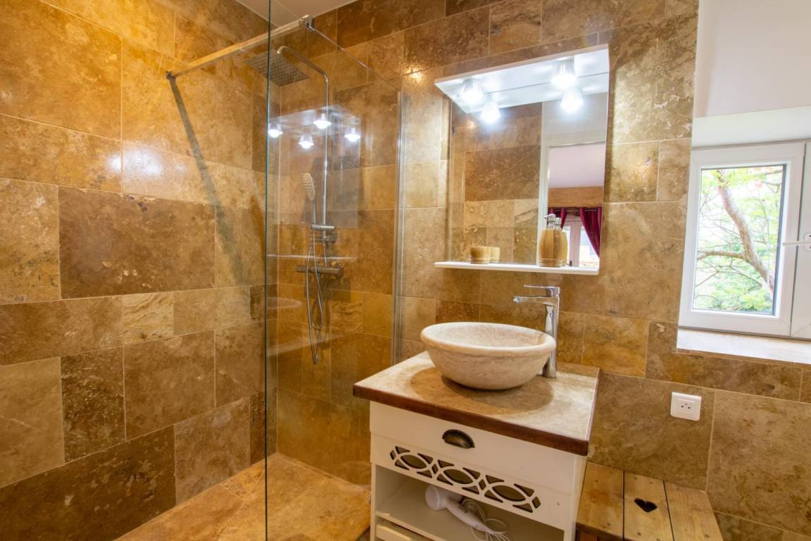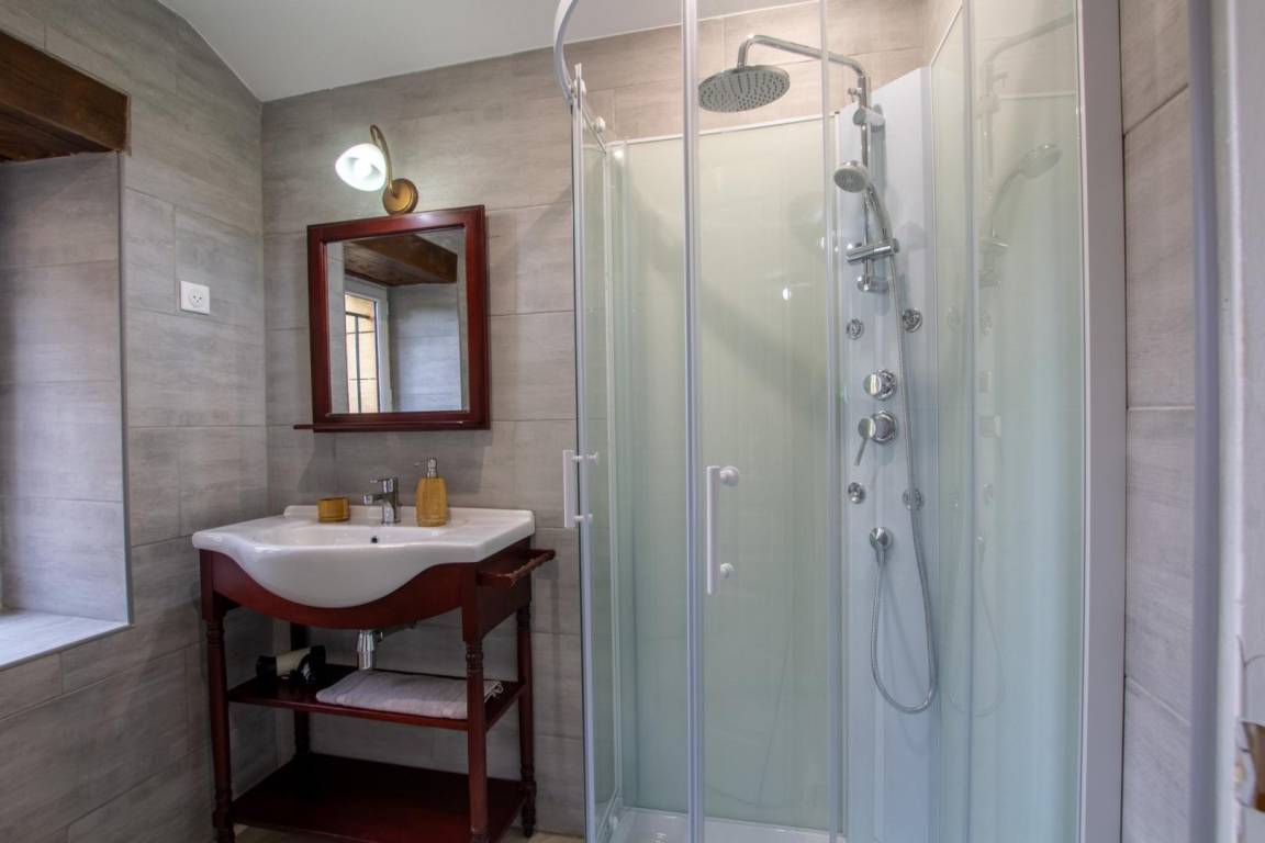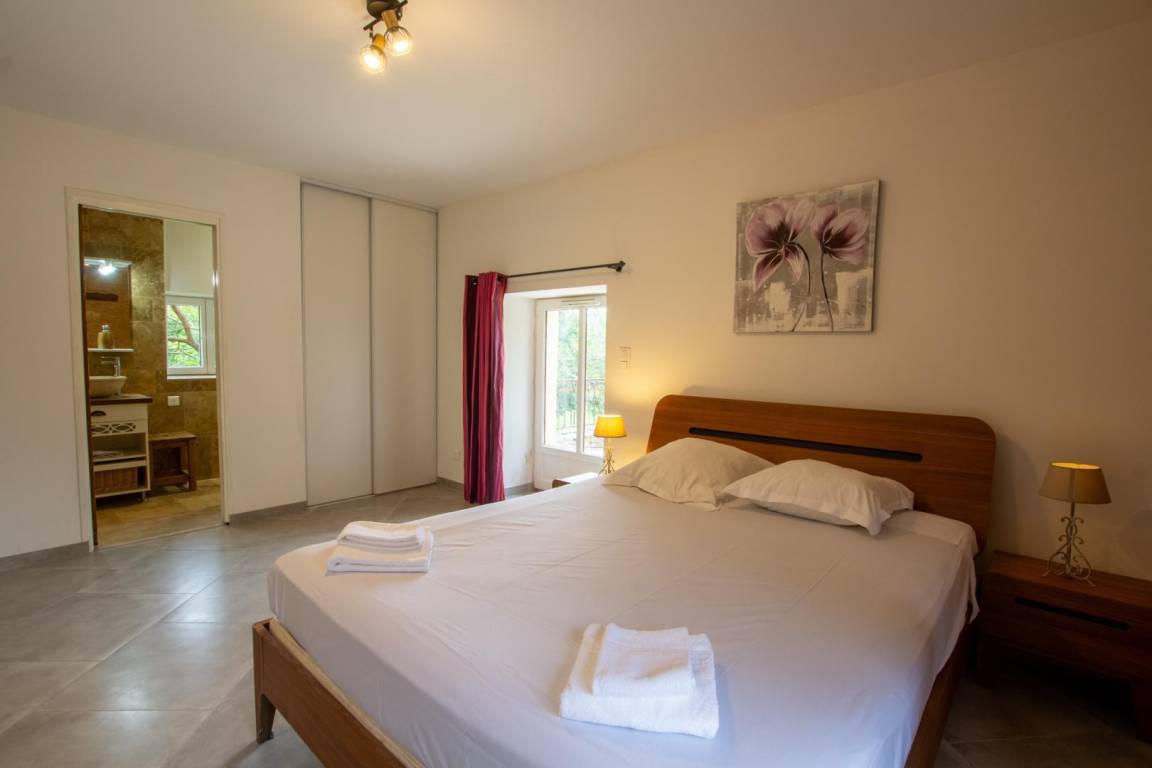 Auf einem Grundstück mit 3 Wohnungen befindet sich ein wunderschönes Steinhaus mit privatem Pool. Im Erdgeschoss befindet sich ein Wohnzimmer, bestehend aus einem Wohnbereich mit einem Ecksofa, einem Fernseher und einem Esszimmer. Außerdem steht Ihnen eine große, voll ausgestattete separate Küche zur Verfügung. Eine separate Toilette mit Handwaschbecken. Sowie eine Suite mit einem 160x200 Bett. Im Obergeschoss gelangen Sie nach 16 Stufen zu 4 Schlafzimmern: drei Schlafzimmer mit einem 160x200-Bett und eines mit 4 Etagenbetten. Jedes Zimmer verfügt über ein eigenes Badezimmer, bestehend aus einer Duschkabine, einem Waschbecken und einer Toilette. Sie verfügen über einen privaten, salzbeheizten Swimmingpool, der von Mai bis September geöffnet ist und eine Größe von 9 x 4,5 m mit einer progressiven Tiefe von 1 m20 bis 1 m50 hat. Aber auch eine große Terrasse mit Liegestühlen, Gartenmöbeln, Grill, Garten, Pétanque-Platz. Gemeinsamer Spielbereich für Kinder mit einer anderen Gîte.