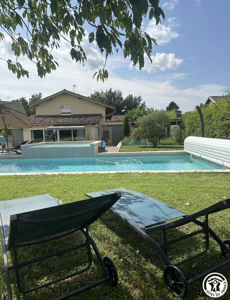 „Nous avons passé un excellent séjour, les hôtes ont été autant sympathiques que prévenants. L'équipement du gîte était parfait et une piscine de 12m superbe.“