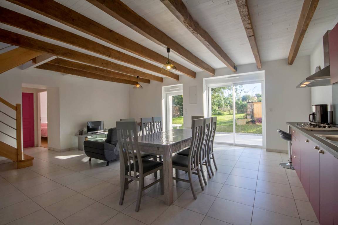 Sie brauchen unbedingt Erholung? Lust auf einen Urlaub im Grünen? Im Ferienhaus Prés de Vilaine sind Sie genau richtig! Saint Dolay liegt im Osten des Départements mitten im Grünen mit natürlich gebliebenen Landschaften: Wälder und Sumpfgebiete, Teiche, Wiesen an der Vilaine, Felder und bewaldete Hügel... Ziehen Sie Ihre Wanderschuhe an und durchstreifen Sie Wiesen und Wälder! Sehenswürdigkeiten: das Sumpfgebiet Roho ist ein Naturschutzgebiet mit seltenen Tier- und Pflanzenarten. Machen Sie ausgedehnte Touren am Vilaine-Ufer: zu Fuß, mit dem Rad oder in Begleitung von Eseln. Kommentierte Kreuzfahrten auf dem Fluss mit Anlegestelle La Roche-Bernard. 2018 komplett und sorgfältig renoviertes Ferienhaus, komplett neu ausgestattet mit allem Komfort, den Sie sich für einen herrlichen Urlaub in der Bretagne wünschen! Im EG: Vorzimmer und ein gemütlicher und heller Wohnbereich mit Küche, Ess- und Wohnbereich. Außerdem: ein Schlafzimmer (1 Bett 160), ein Bad mit Dusche, ein separates WC mit Han