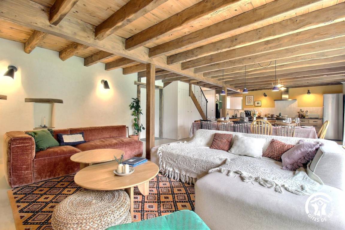 Das Haus vereint modernen Stil und Tradition dank natürlicher Materialien: Wände aus Kalk-Hanf und Lehm, warmes Holz und sorgfältig ausgewählte Antiquitäten verleihen jedem Raum Charme und Charakter. Das große, zur Natur hin offene Wohnzimmer lädt zum Entspannen am Kaminofen ein – der perfekte Ort, um mit Familie und Freunden zusammenzukommen.