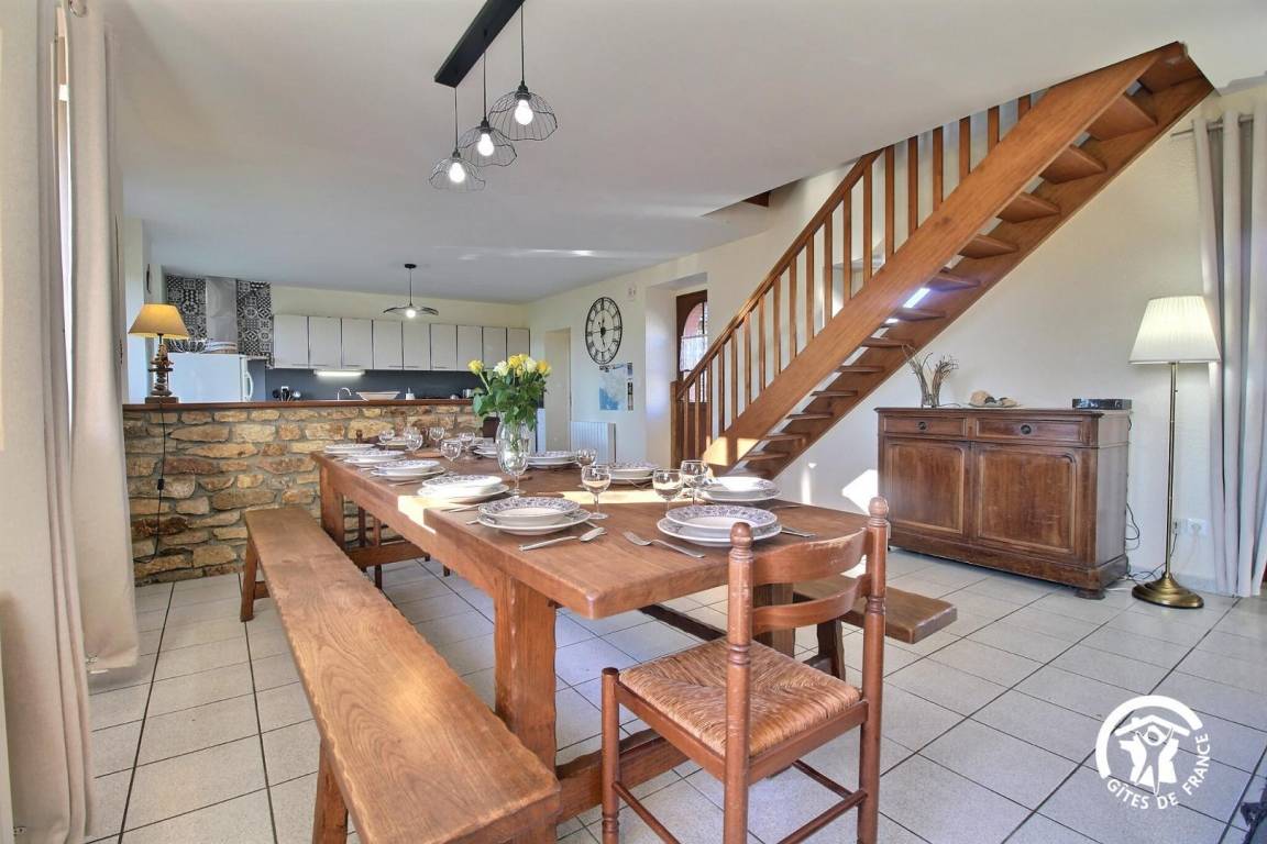 Saint Dolay liegt mitten im Grünen zwischen La Roche-Bernard und Redon. Natürliche Landschaften: Sümpfe, Teiche, Nähe zur Vilaine, herrlich für Spaziergänge. La Roche-Bernard (20 Min). Guérande und Salzgärten 1 Std, La Baule, Pornichet: lange Strände! Ferienhaus in der Nähe Wohnhaus des Vermieters:-Erdgeschoss: Wohnbereich mit Kochecke, Essbereich/Wohnzimmer mit Kamin, Bad mit Dusche, 1 Schlafzimmer mit 2 Betten 90, WC.-1. Stock: 4 Zimmer (2 Zimmer mit je 2 Betten 80x190 und 2 Dreier-Zimmer: 1 Bett 140 und 1 Bett 120 / 1 Bett 140 und 1 Bett 80), Bad mit Dusche, WC.Im Freien: eigener Garten 600 m², Gartenmöbel, Grill, Schaukelanlage, überdachter Abstellraum Fahrräder. Barrierefreies Ferienhaus. Saalvermietung auf Anfrage: großer Saal für Empfänge/Familienfeste (nicht anliegend, Aufschlag).Bemerkung: Landwirtschaftsbetrieb in der Nähe, vom Ferienhaus nicht sichtbar. Bei der Ankunft müssen 2 Schecks als Kaution hinterlegt werden: 1 für das Ferienhaus 500€, 1 als Reinigungskaution 120€.