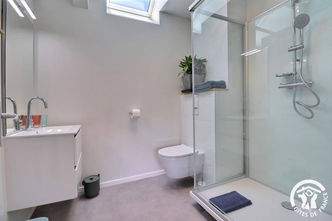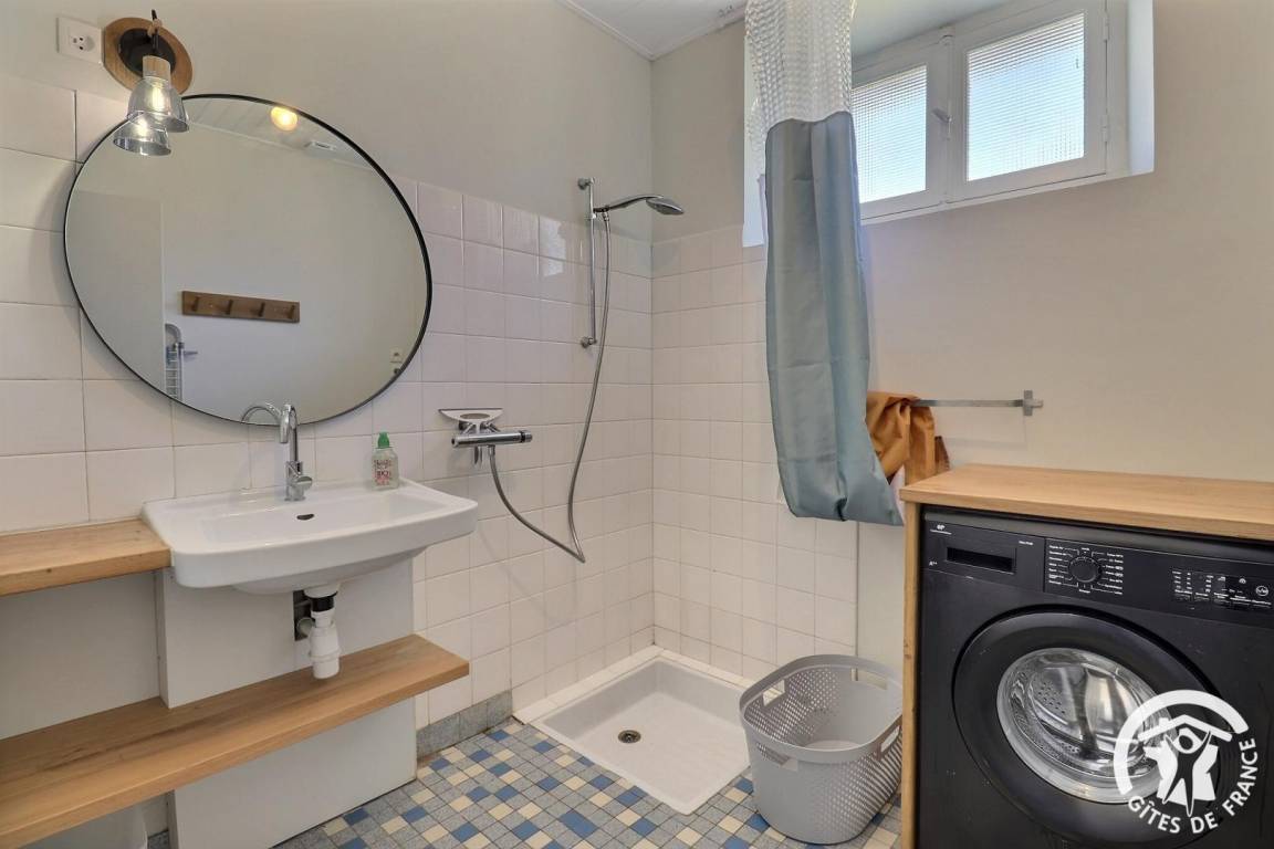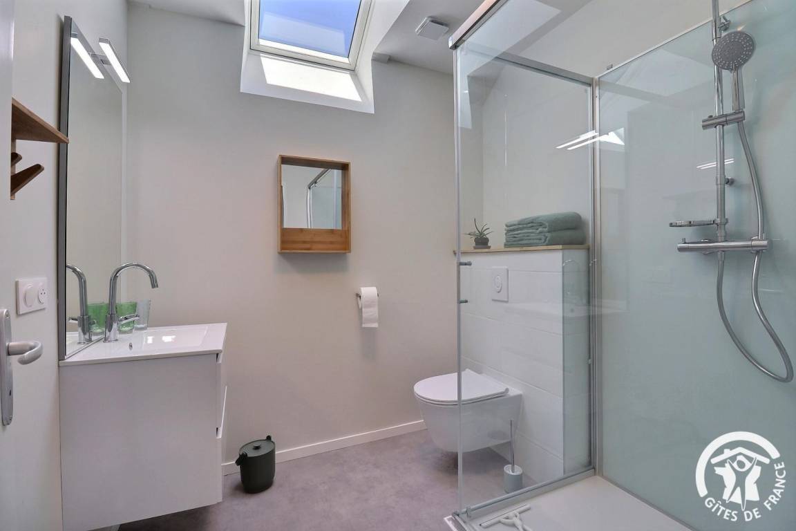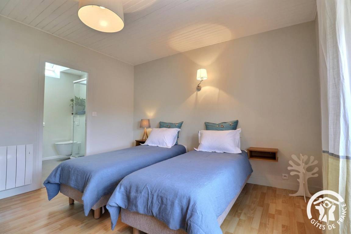 „Cadre agréable et calme bien situé pour rayonner dans la région. Logis sympathique et bien équipé. 2 belles chambres à l'étage avec 2 belles douches et WC. Literie confortable. Ensemble clair et agréable à vivre.“