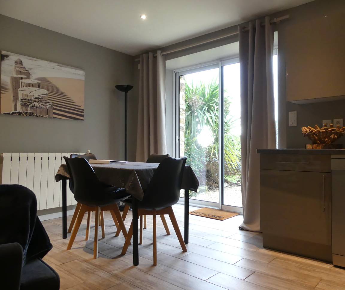 „Nous avons passe un sejour tres agreable dans une magnifique region qui porte bien son nom de riviera Bretonne Accueil de la propritaire du gite parfait et plein d attention bouteille d'eau, Cidre... Le gite est tres propre tres bien equipe et decore avec bcp de soin Draps, serviettes de toilette fournies c est vraiment Top...On se sent vraiment comme a la maison. Le seul petit bemol concerne l eloignement du gite des zones cyclables securisees pour acceder aux bords de mer c est un peu dommage pour le reste je recommande c est une super destination, un hebergement de gde qualite et une proprietaire discrete et attentionnee...“