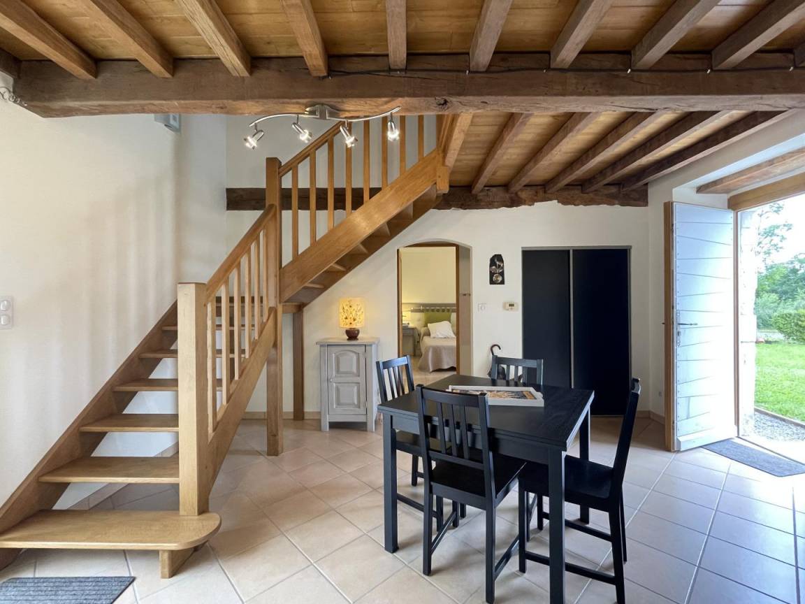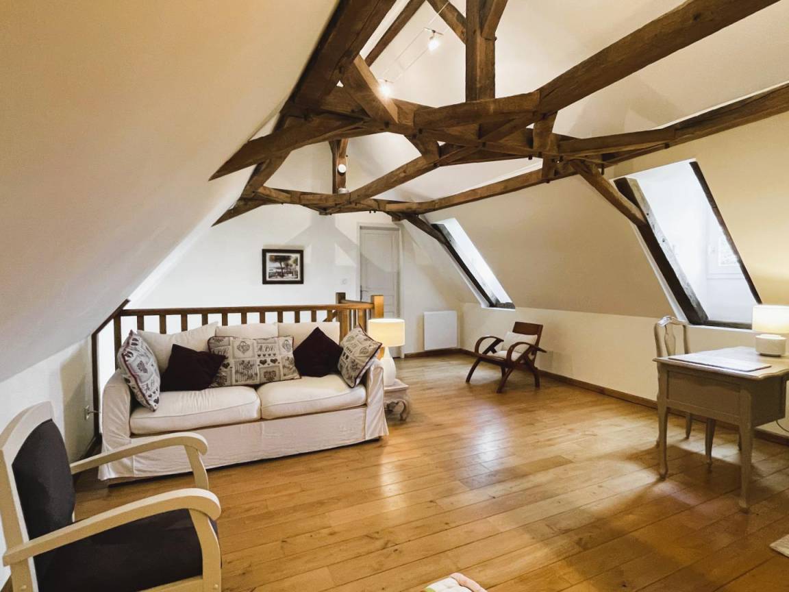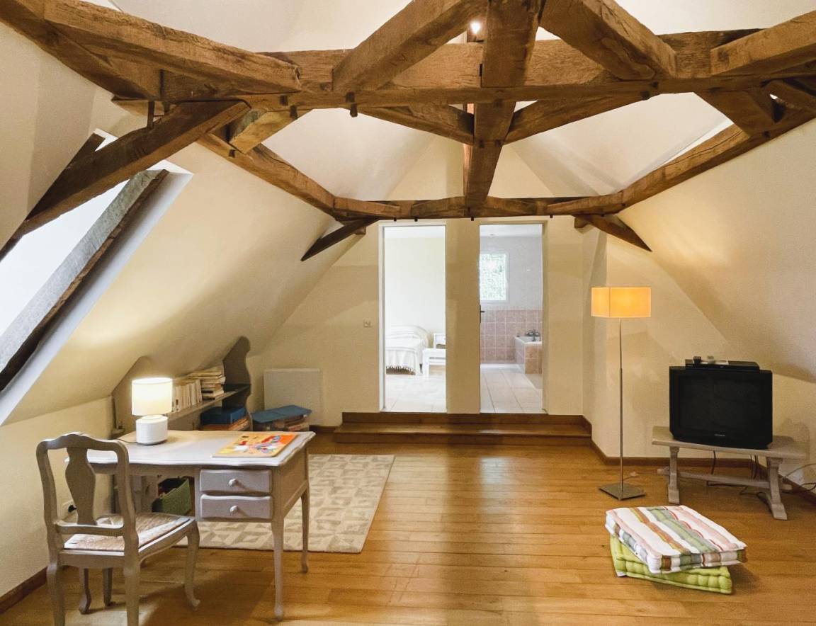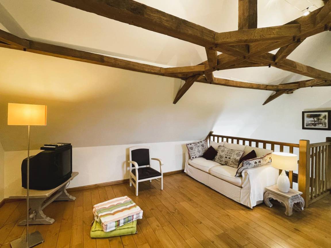 Jeder Komfort und schöne, helle Räume. Einfache und moderne Dekoration, die alte Balken und das ursprüngliche Fachwerk hervorhebt.