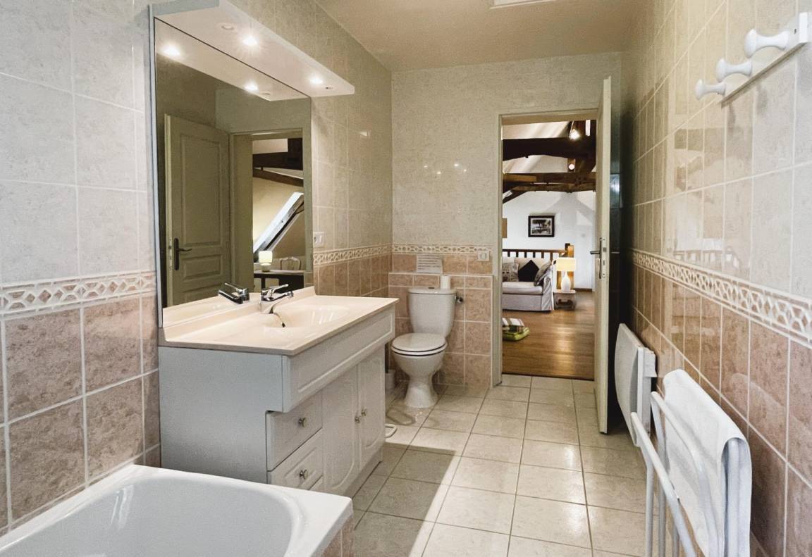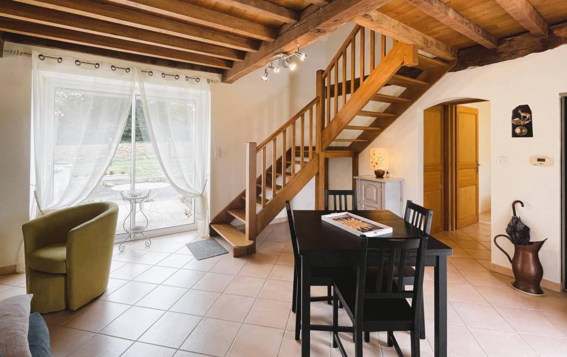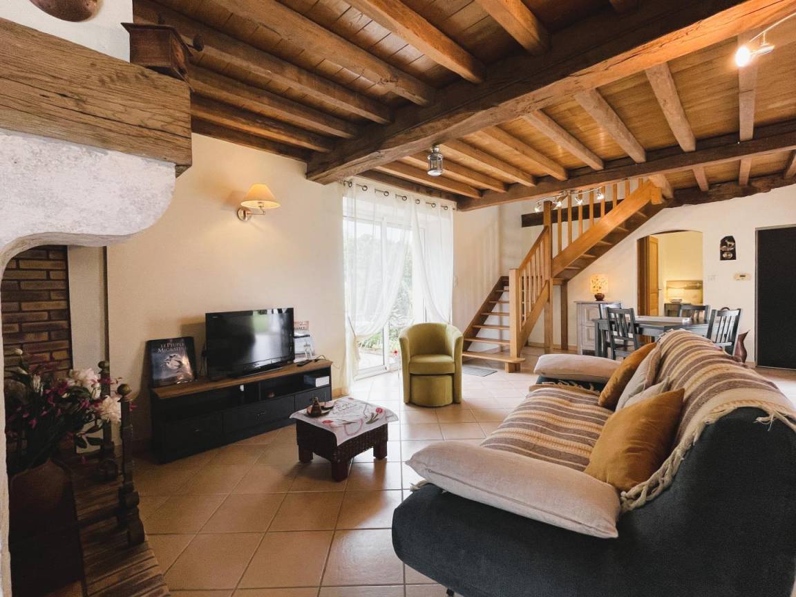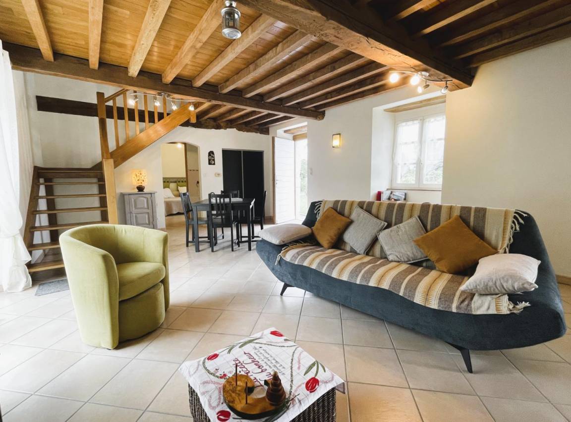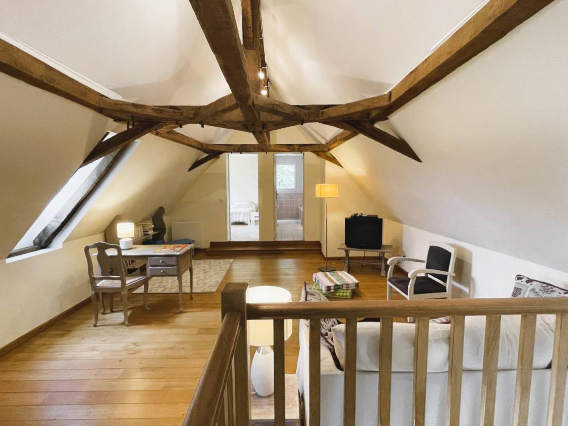 Jeder Komfort und schöne, helle Räume. Einfache und moderne Dekoration, die alte Balken und das ursprüngliche Fachwerk hervorhebt.