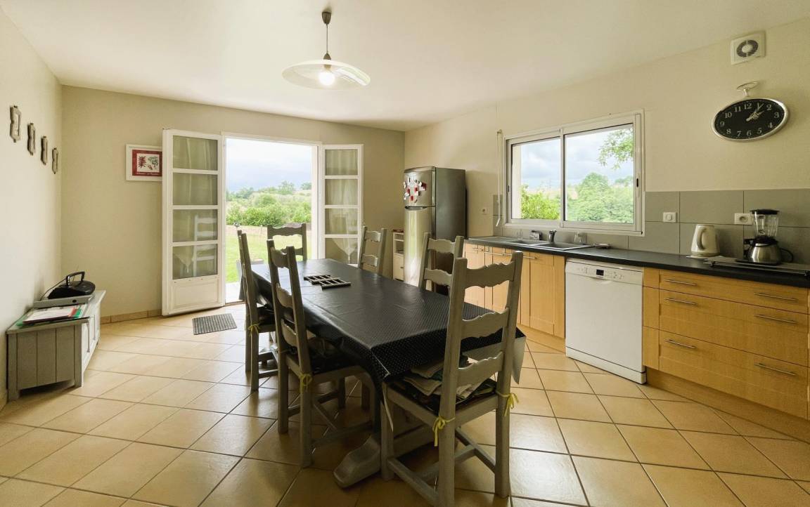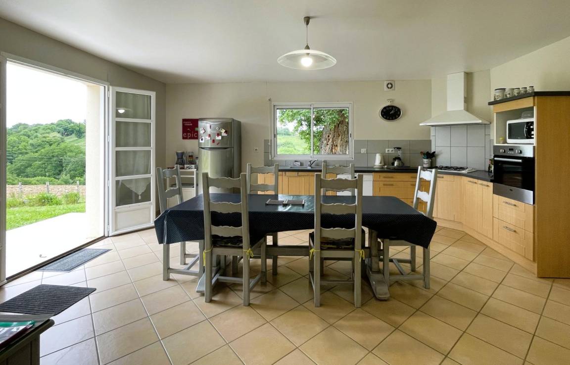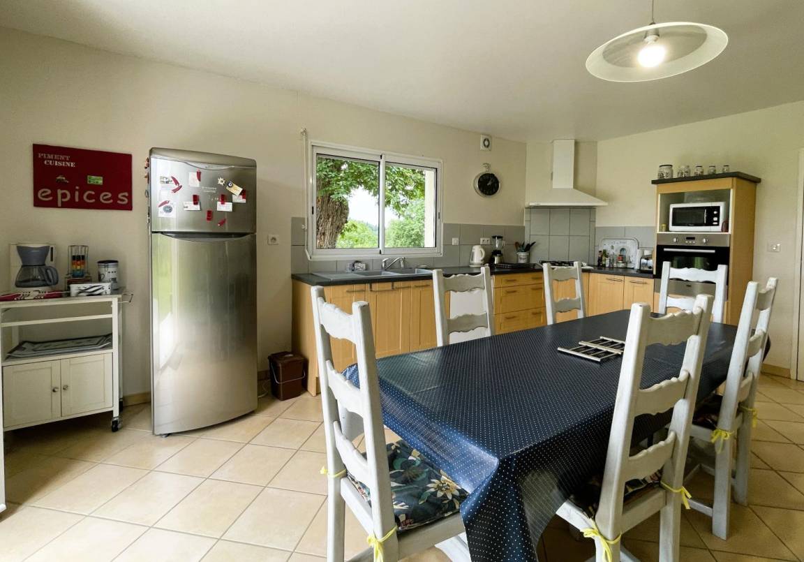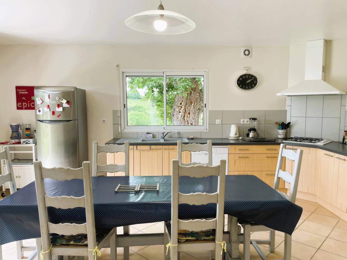 - Ausgestattete Küche (Backofen und Mikrowelle, Gasherd, Kühl-Gefrierkombination, Geschirrspüler) mit Zugang zur Terrasse.
