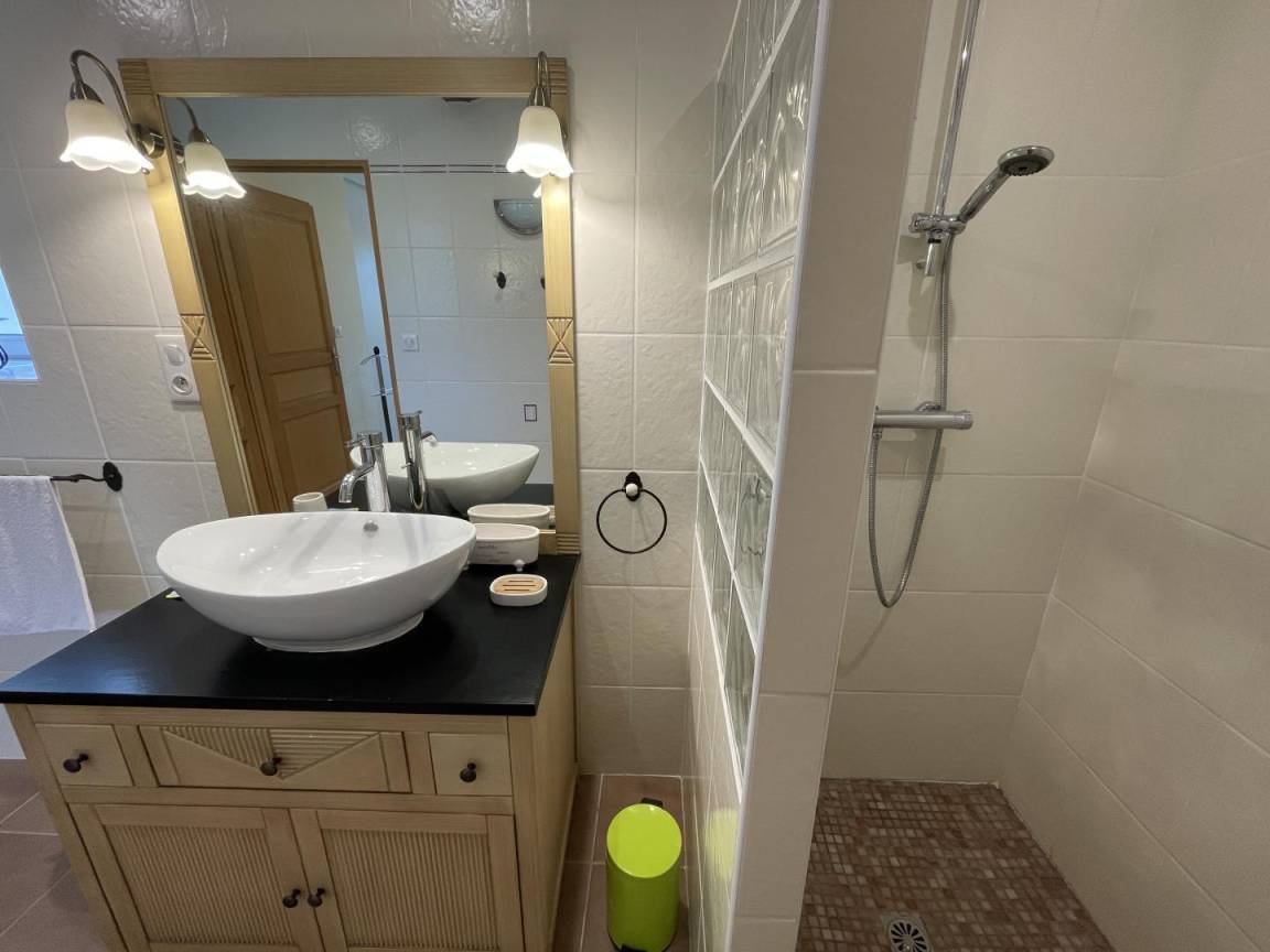 - Komplettes Wohnzimmer (TV, CD-Radio). WC. 1 Schlafzimmer (1 Bett 160) mit angrenzendem Badezimmer (italienische Dusche). Abstellraum (Waschmaschine).