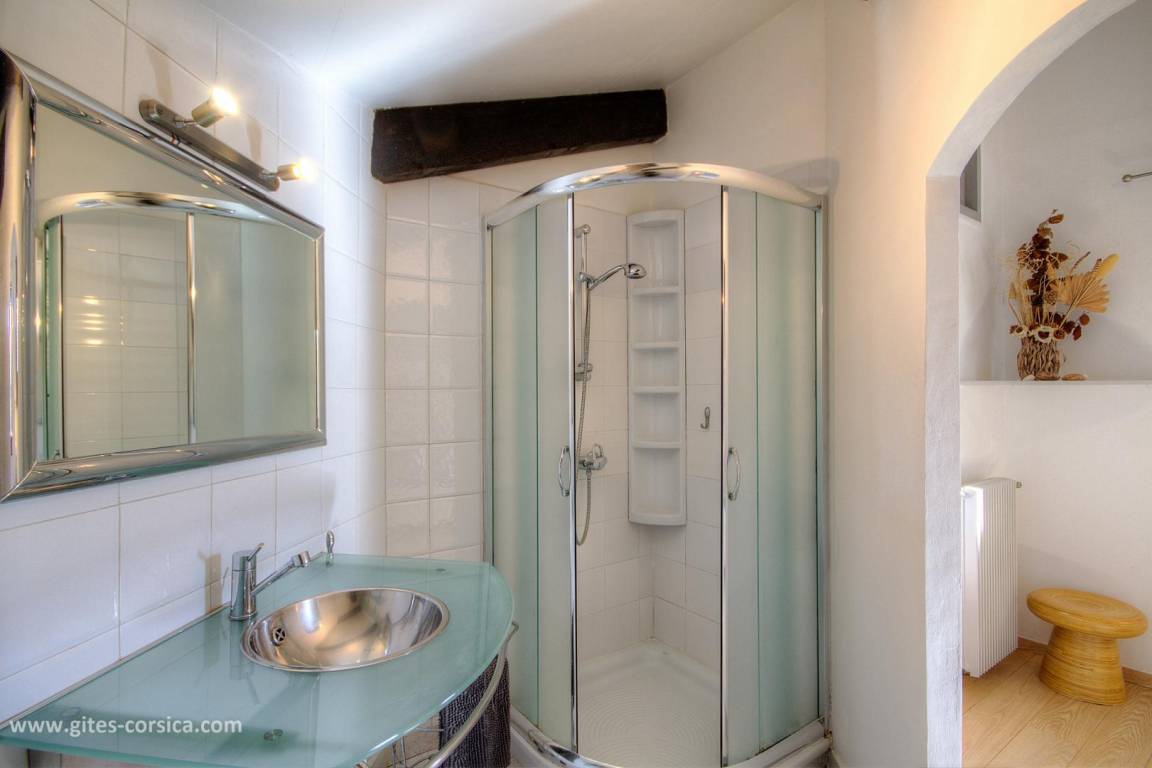 - 1 Schlafzimmer mit Doppelbett (140 x 190 cm) mit offenem Duschbad und separate Toiletten