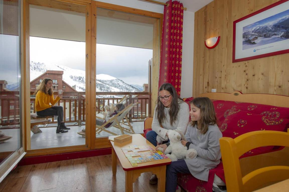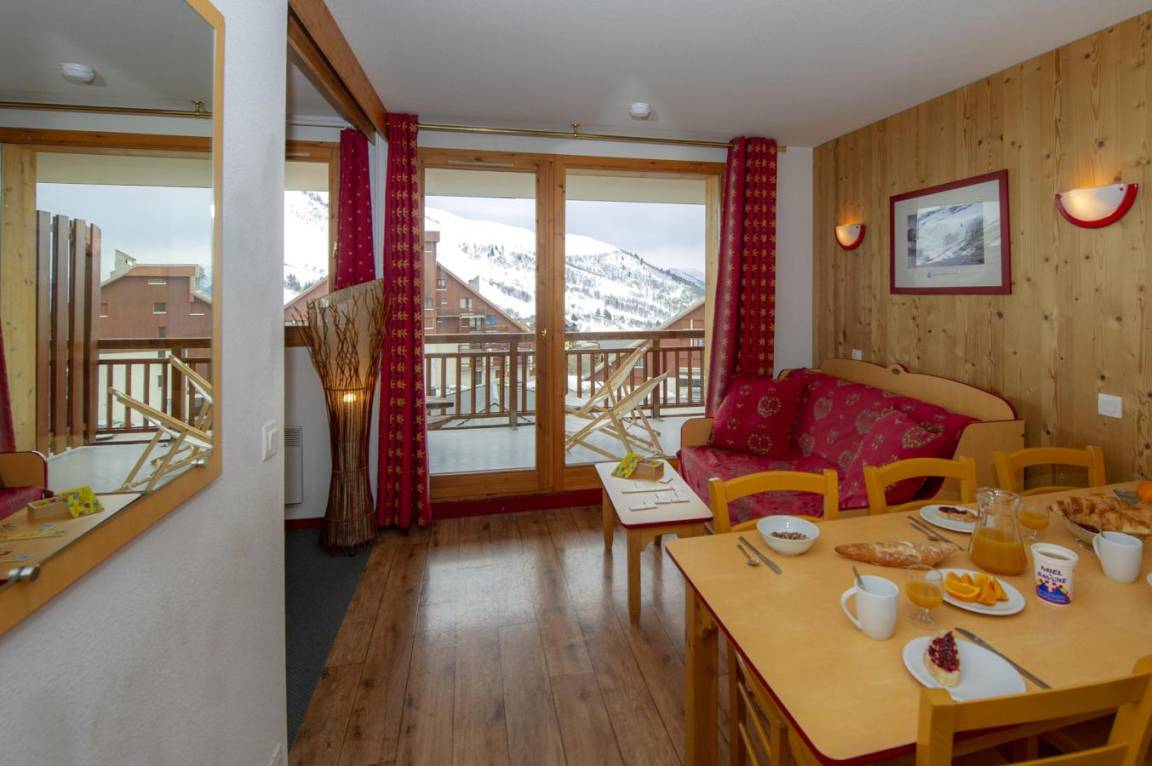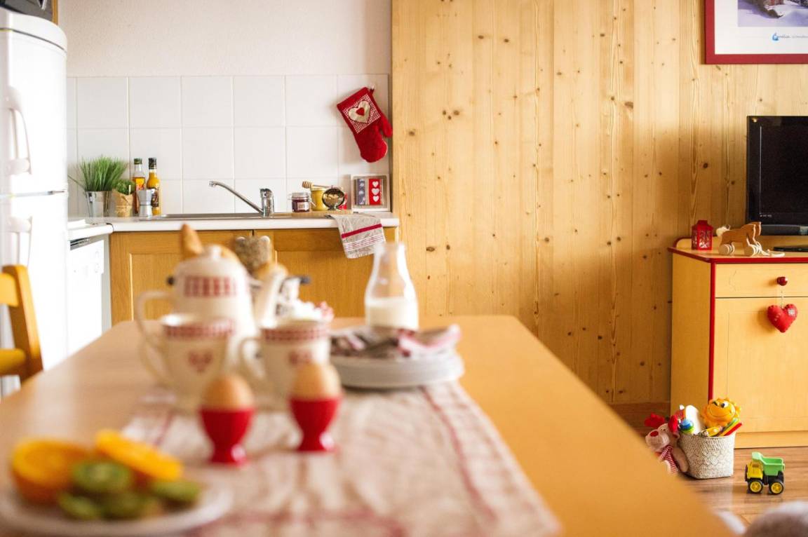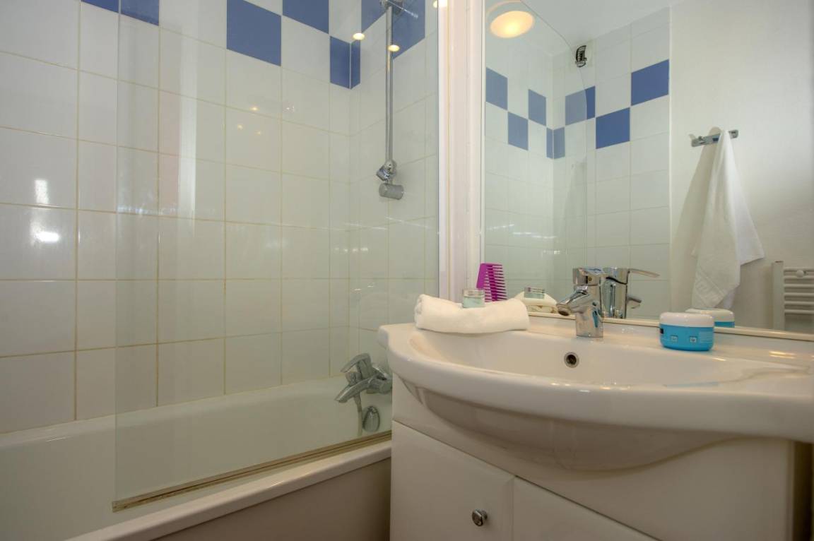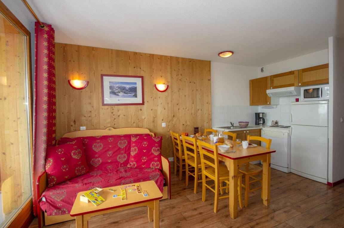 Fläche von ungefähr 35 m². Wohnzimmer mit Klappschlafcouch. Schlafzimmer mit Doppelbett oder 2 Einzelbetten. Schlafzimmer mit 2 Einzelbetten oder 2 Stockbetten. Kochnische mit Wasserkocher, Kaffeemaschine, Dunstabzugshaube, Geschirrspülmaschine, Mikrowellenherd, 4 Herdplatten, Kühlschrank. Badezimmer. separates WC. Balkon ODER Terrasse. Die oberen Betten sind nicht für Kinder unter 6 Jahren geeignet.
