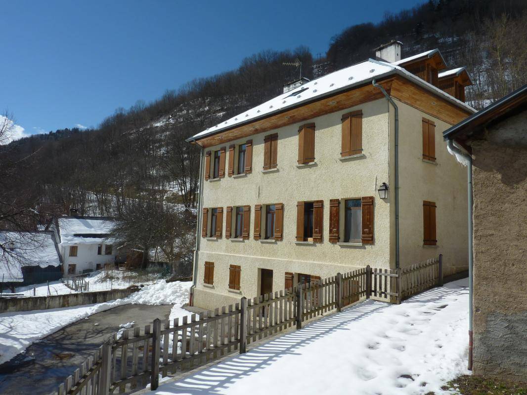 5 Unterkünfte im Haus. 1. Stock (Zugang im Winter zum Eingang des Gebäudes über eine vom Parkplatz absteigende Treppe): Wohnzimmer-Küchen-Loungebereich (1 Schlafsofa für 2 Personen), 2 Schlafzimmer (1 Doppelbett / 2 Einzel-Etagenbetten), Badezimmer (Dusche), separates WC. Gemeinsame Waschmaschine. Hof + kleiner Boden gemeinsam. Skigebiet St. François Longchamp/Valmorel 17 km (nur über die Straße D213 über St. Martin La Chambre). Schneeschuhe bei 4km. Zugang zur Hütte im Winter über eine Treppe vom öffentlichen Parkplatz; im Sommer Parkmöglichkeit im Hof.