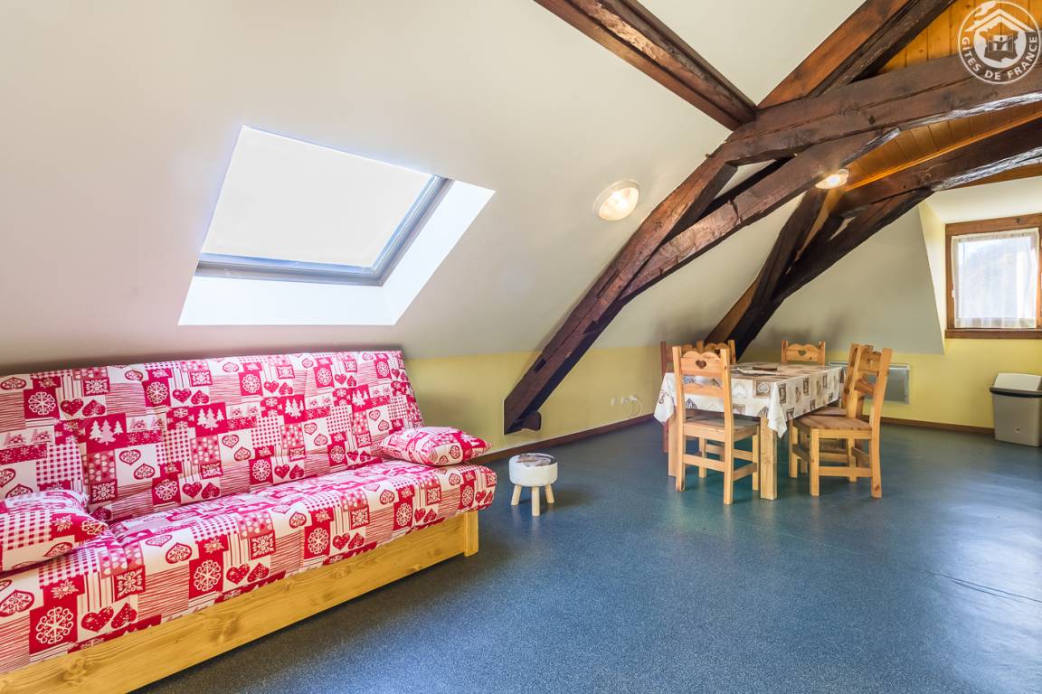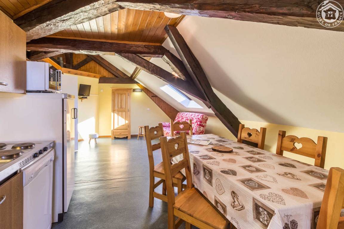 5 Unterkünfte im Haus. 2. Stock (Zugang im Winter zum Eingang des Gebäudes über eine vom Parkplatz absteigende Treppe): Wohnzimmer-Küchen-Loungebereich (1 Schlafsofa für 2 Pers.), 2 Schlafzimmer (1 Bett 2 Pers. / 2 Betten 1 Pers. ), Badezimmer (Dusche), separates WC. Gesamtwohnfläche: 82 m² Dachgeschoss inklusive. Gemeinsame Waschmaschine. Hof + kleiner Boden gemeinsam. Skigebiet St. François Longchamp/Valmorel 17 km (nur über die Straße D213 über St. Martin La Chambre). Schneeschuhe bei 4km. Zugang zur Hütte im Winter über eine Treppe vom öffentlichen Parkplatz; im Sommer Parkmöglichkeit im Hof.