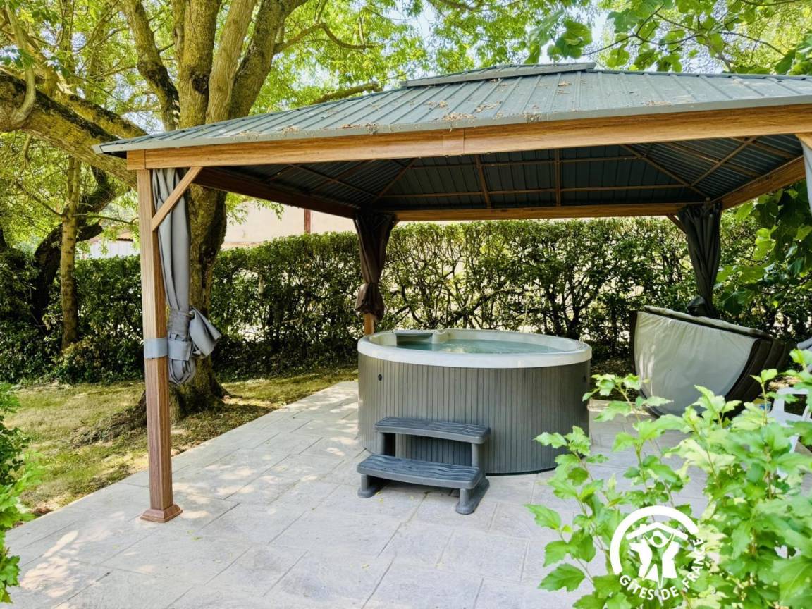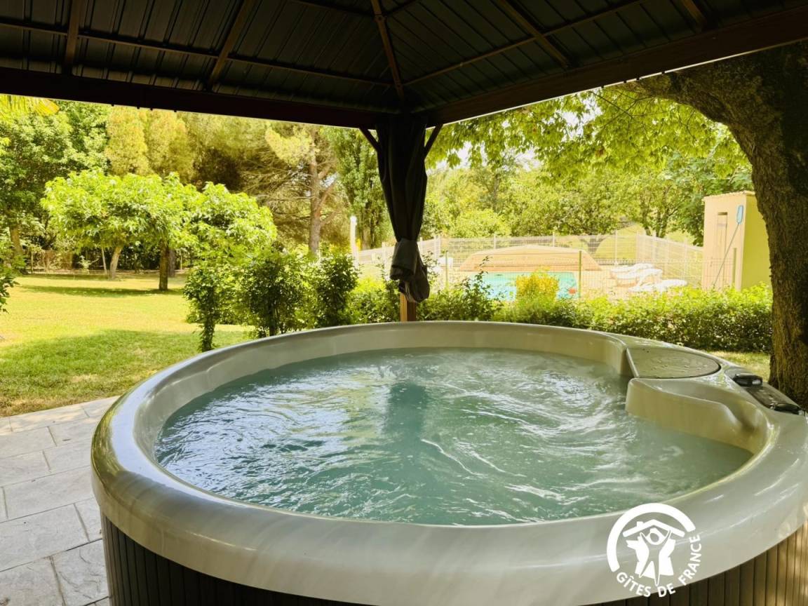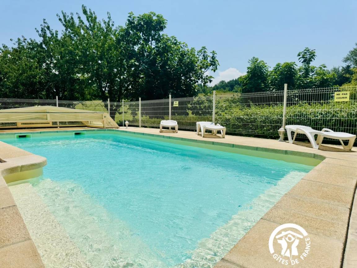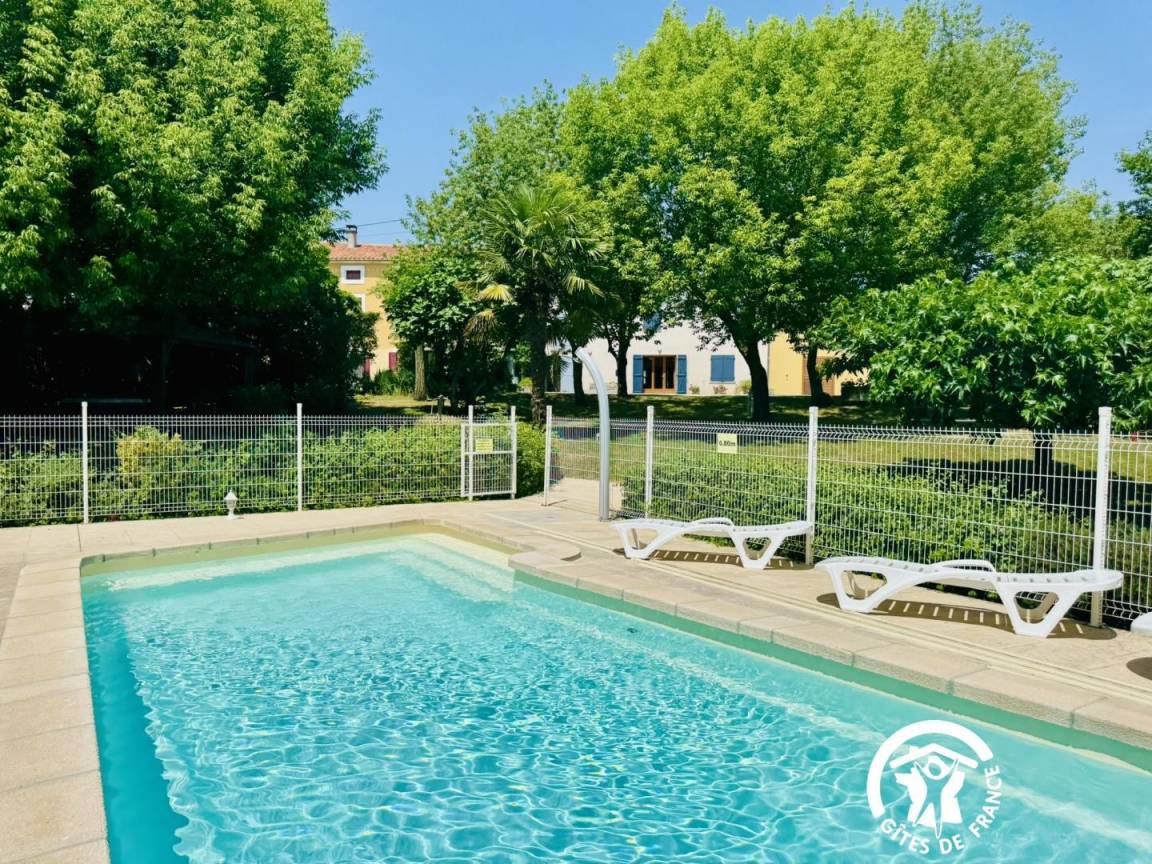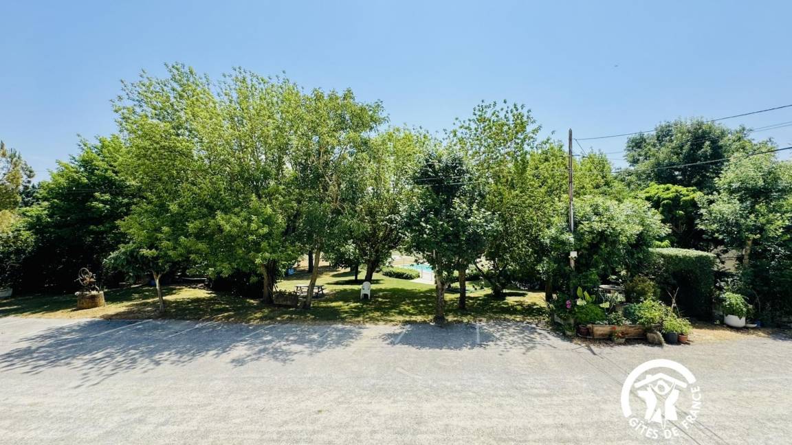 Abseits des Dorfes gelegen, ist es der ideale Ort für einen Urlaub mit Familie oder Freunden in einer erholsamen und grünen Umgebung. Das Ferienhaus grenzt an ein weiteres Ferienhaus und teilt sich mit diesem den Zugang zum Swimmingpool (10 x 4 m, Tiefe 0,80 bis 1,80 m, durch einen Zaun gesichert). Darüber hinaus bietet es mehrere schattige und private Außenbere