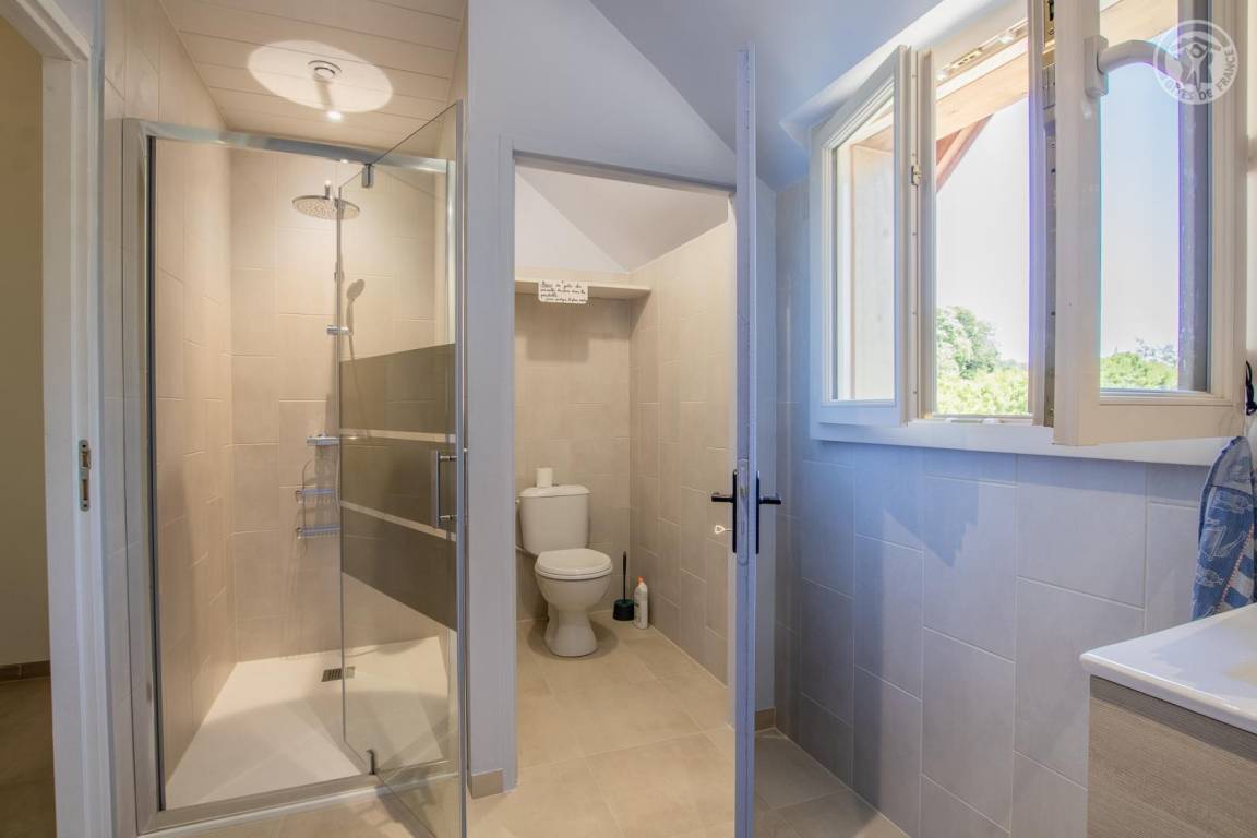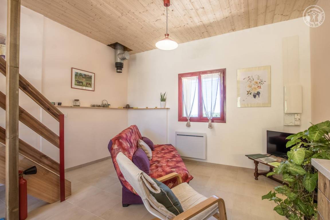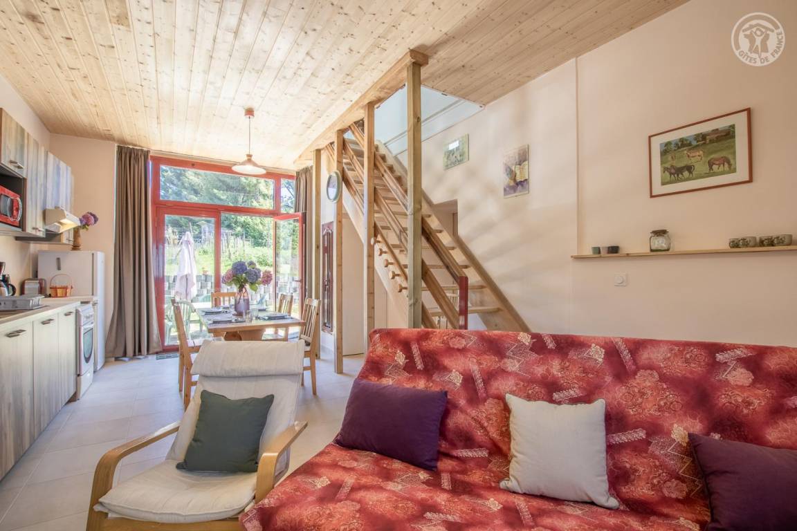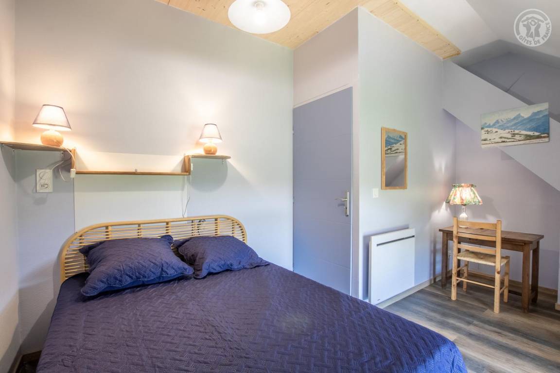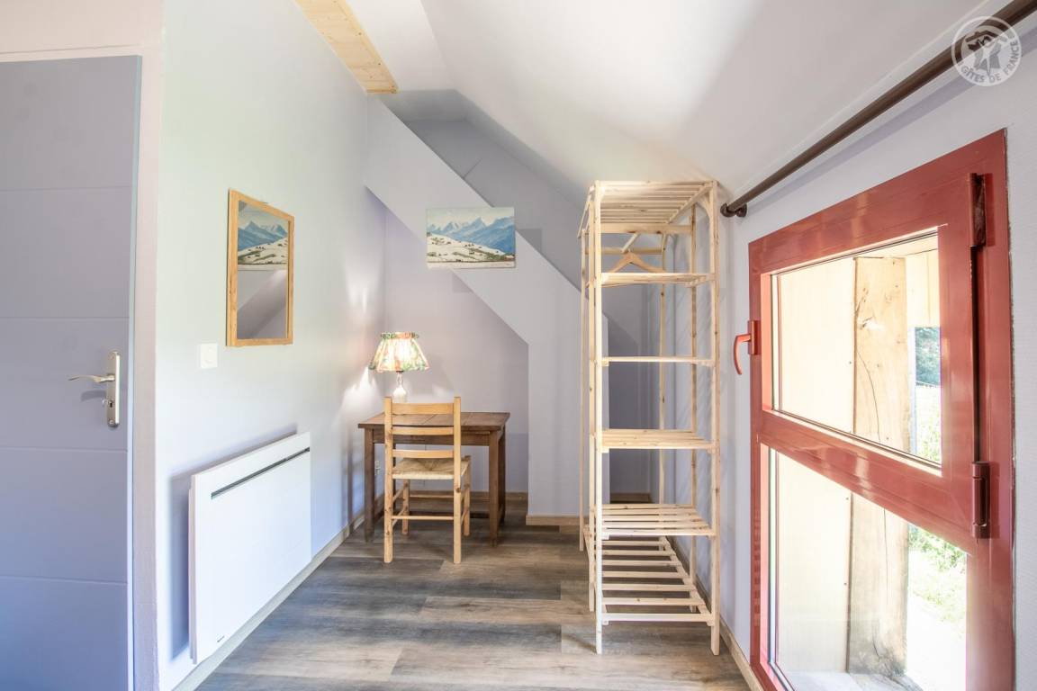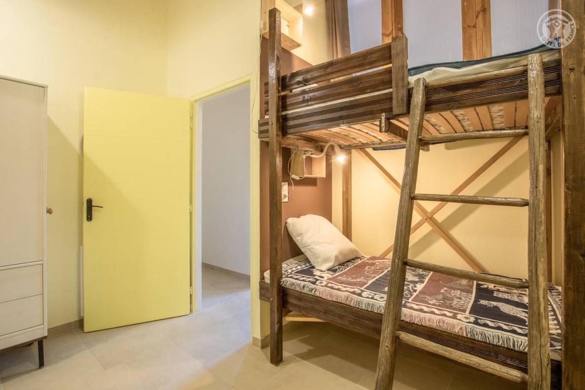 Gîte neben dem Haus der Eigentümer, auf 2 Ebenen mit separatem Eingang. Erdgeschoss: Wohnküche, Sitzecke, separates WC (Waschbecken). 1. Stock: 3 Schlafzimmer (1 Doppelbett 140x190 cm / 1 Doppelbett 140x190 cm / 2 Etagenbetten für 1 Person), ein Duschbad mit geschlossenem WC. Waschmaschine im Ort gemeinsam mit den Eigentümern. Grundstück, privater Parkplatz.
