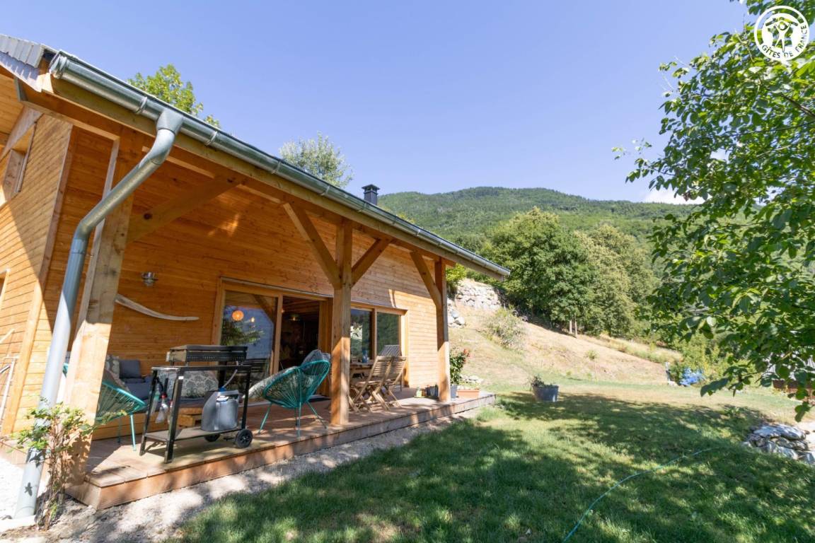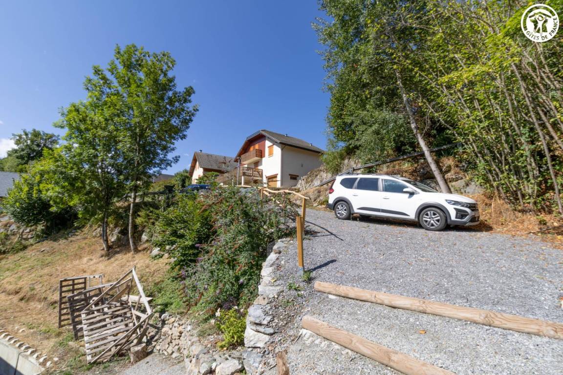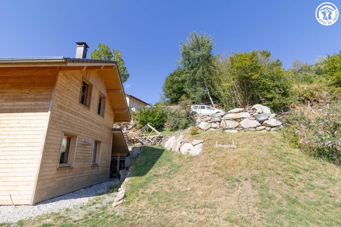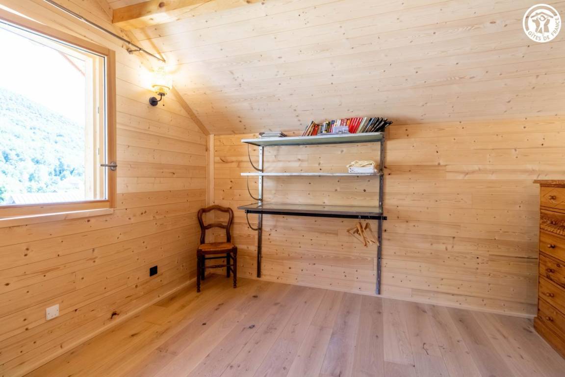 Freistehendes Chalet auf zwei Ebenen. Erdgeschoss: Eingang, Wohnzimmer - Küche, separates WC, Waschküche. 1. Stock: Wohnzimmer im Zwischengeschoss, 2 Schlafzimmer (1 Doppelbett 160x200 cm / 1 Doppelbett 160x200 cm), Duschraum mit WC (ebenerdige Dusche). Überdachte Terrasse und Garten. Privater Parkplatz oberhalb des Chalets.