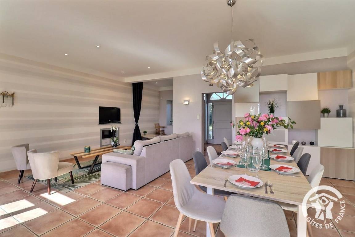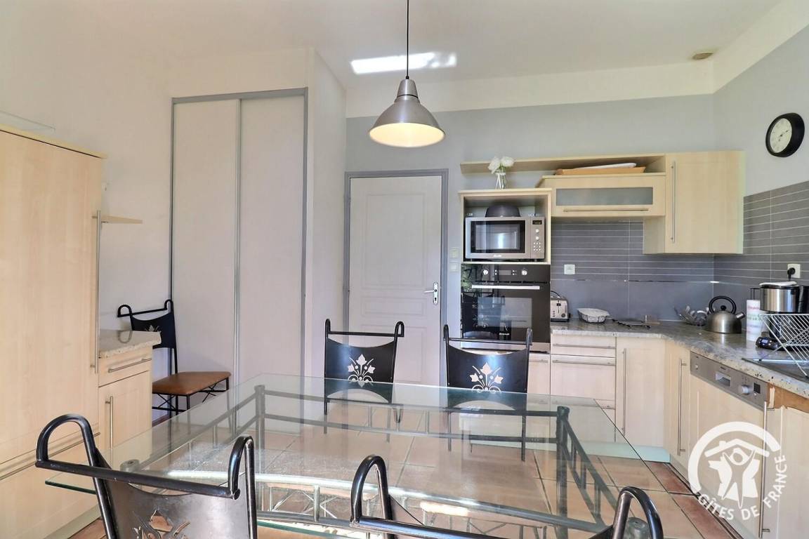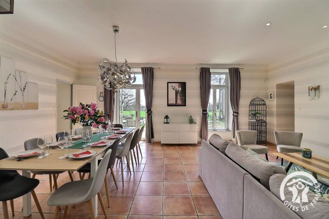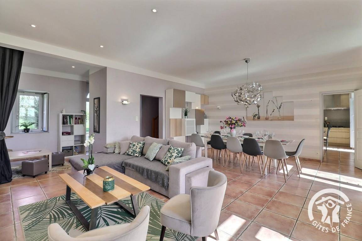 „Grand gîte avec un grand espace extérieur. Malgré l'absence de jardin clos, le séjour n'a posé aucun problème pour nos trois chiens. Les conditions d'accueil sont idéales pour accueillir toute la famille enfants et petits enfants.“