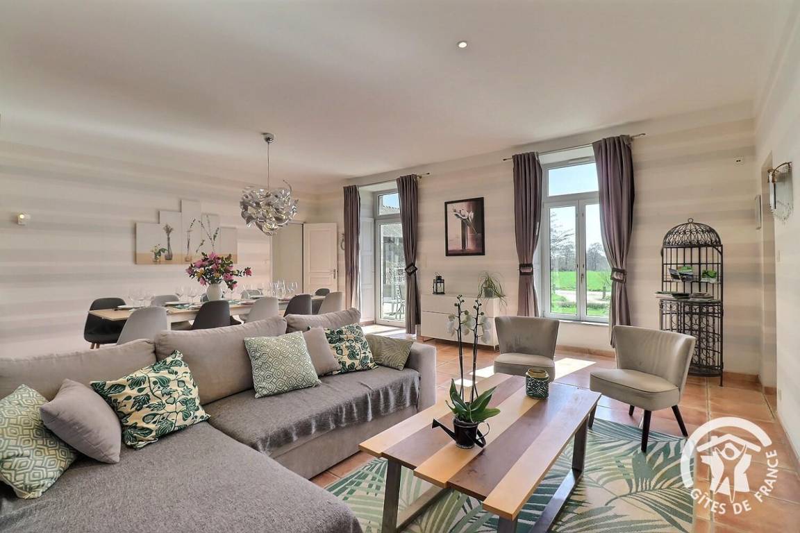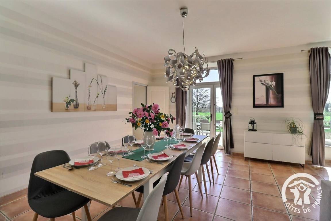 „Nous avons passé un très bon séjour entre amis. Le gîte est un très beau bâtiment, spacieux, bien équipé, avec une très belle et grande terrasse. Nous avons eu un très bon accueil.“
