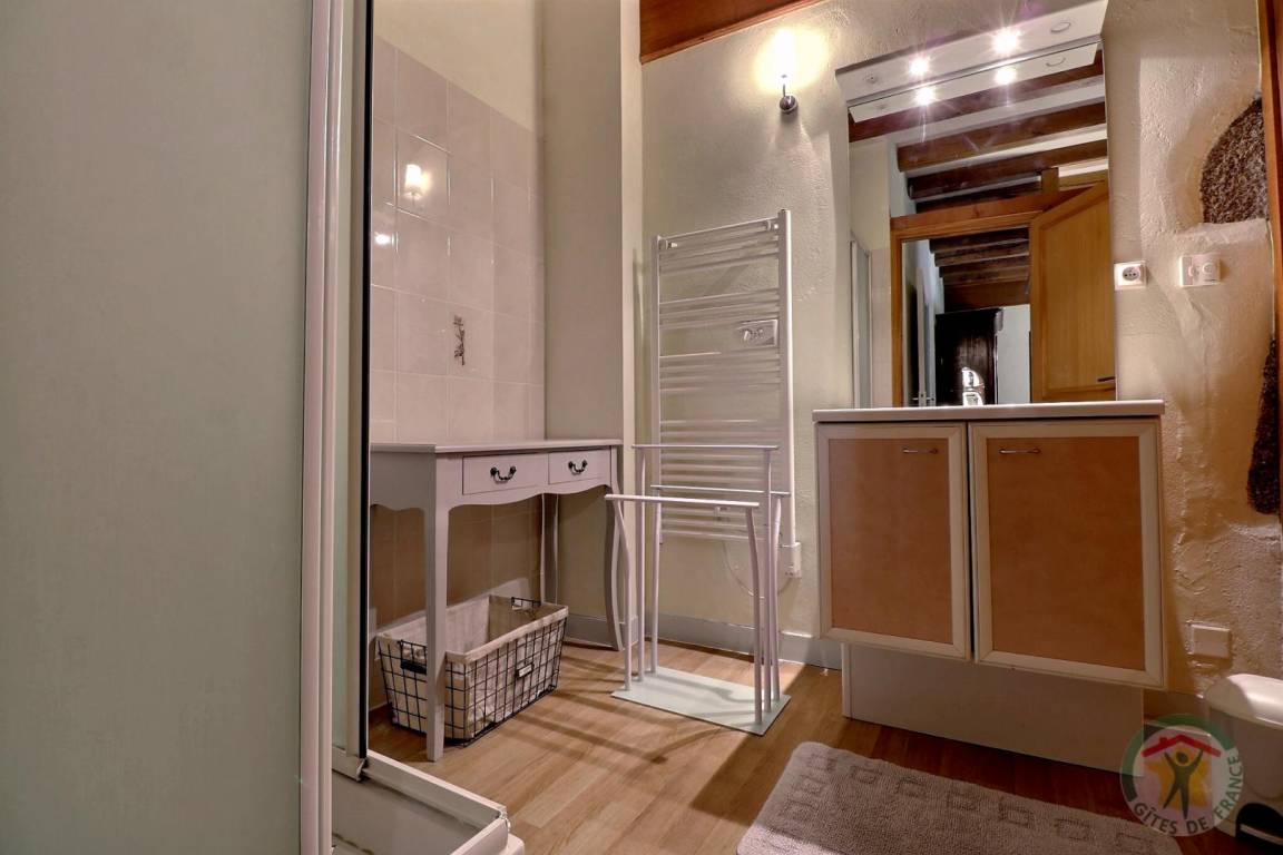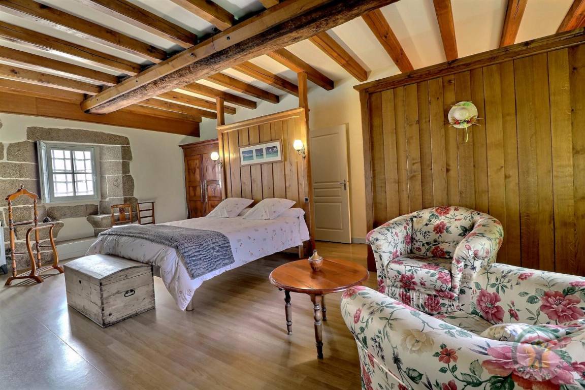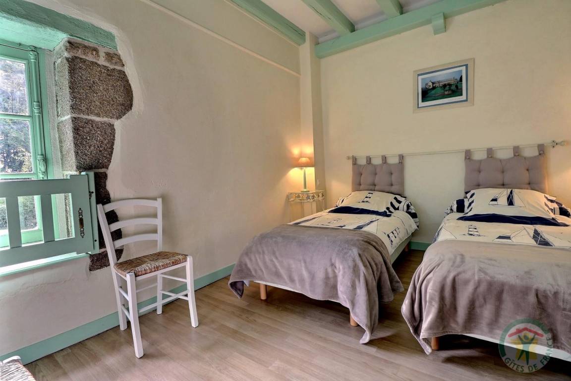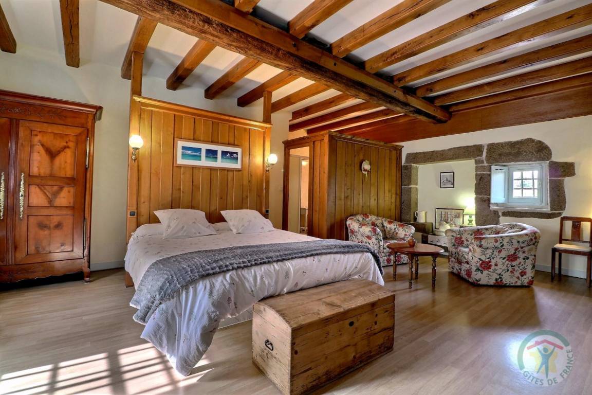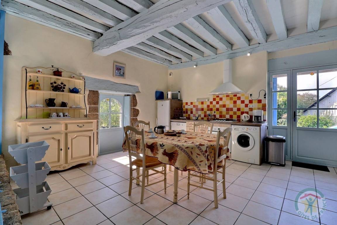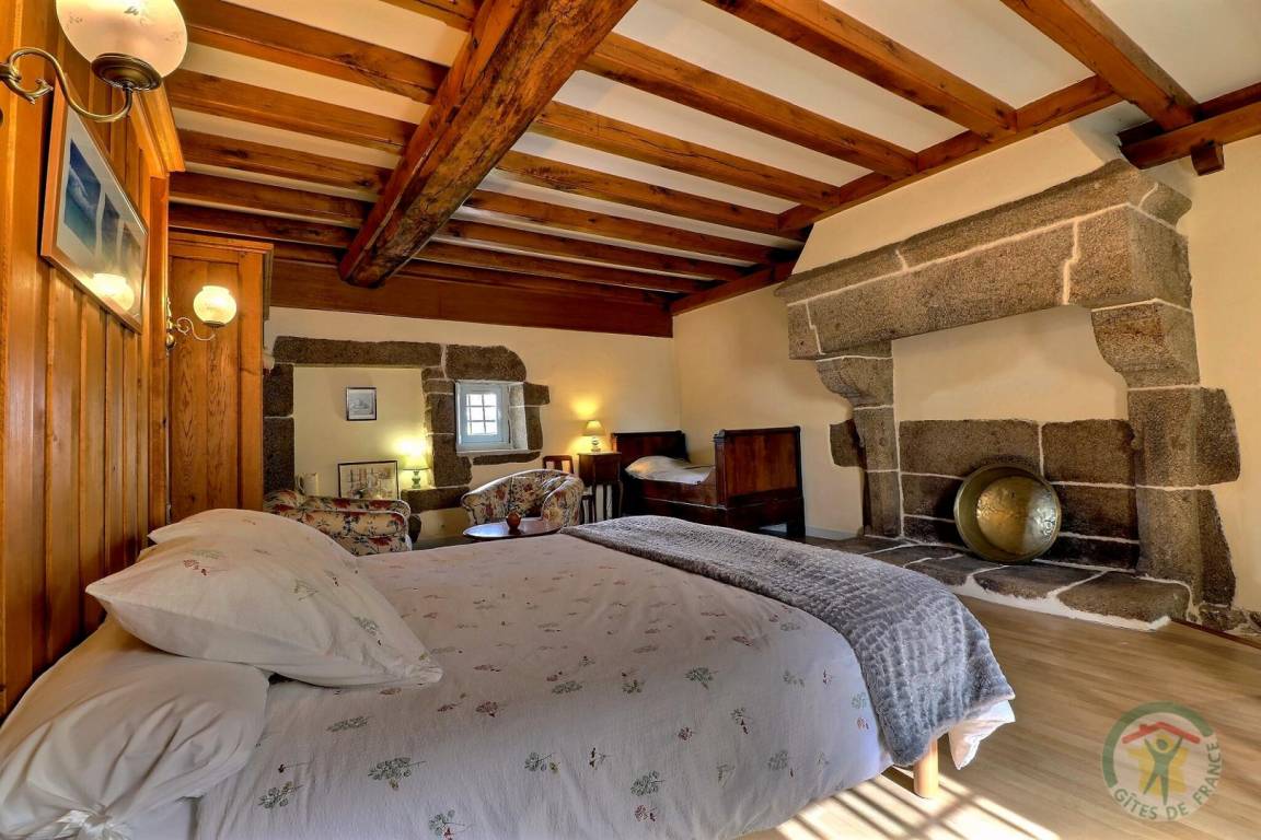 Im EG: separate Küche, Wohnbereich Esszimmer/Wohnzimmer mit großem Kamin aus Granit (Geschirrschrank und sehr alte, ursprüngliche Wendeltreppe aus Stein). Im Stockwerk (Zugang über neue Treppe): 1 Schlafzimmer (1 Doppelbett), 1 Schlafzimmer (2 Einzelbetten), 1 Schlafzimmer (2 Einzelbetten), 2 Sanitärbereiche mit WC. Fußbodenheizung im Mietpreis inbegriffen. Anliegendes Grundstück mit Gartenmöbeln und Grill.