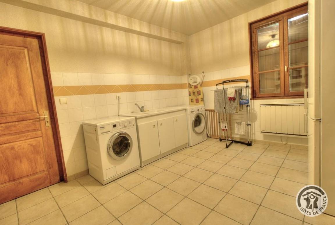„Gîte avec un grand séjour spacieux et cuisine (bien équipée) ouverte. Grande buanderie avec grand congélateur et machine à laver etc. Au 1er étage les 4 chambres et salles de bains permettent de bien répartir le couchage de 2 familles avec enfants. Belle vue sur le village de 2 chambres. Terrasse dans le jardin privatif. Village à distance piétonne.“