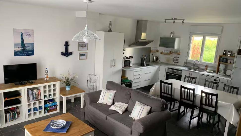 „Très bon accueil, très à l'écoute, Jolie maison très bien équipée (manquerait juste un sèche cheveux), spacieuse et dans une zone peu bruyante, 20 minutes à pied de la plage ou 3 en voiture. Je recommande.“