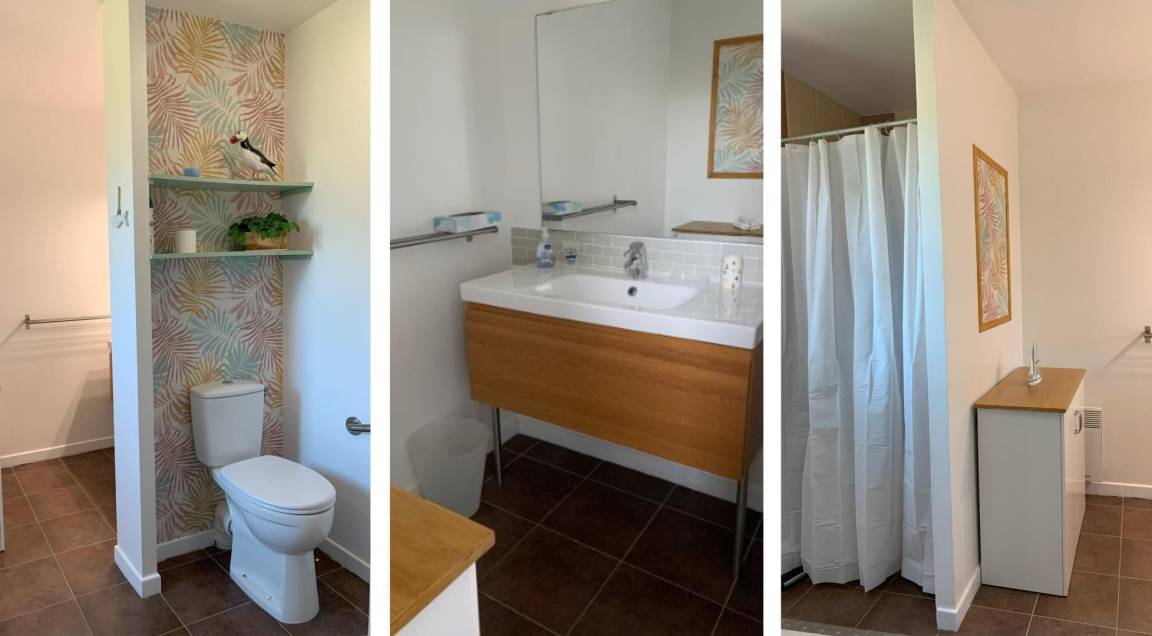 Freistehendes Haus. Erdgeschoss: Wohnzimmer (TV, ADSL-Internet). Küche (Induktionskochfeld, Dunstabzugshaube, Mikrowelle, Geschirrspüler, Kühlschrank mit Gefrierfach). Schlafzimmer 1 (1 Doppelbett). Duschbad mit barrierefreiem WC (Waschbecken, ebenerdige Dusche, beheizter Handtuchhalter). Obergeschoss: Schlafzimmer 2 (2 Einzelbetten). Schlafzimmer 3 (1 Doppelbett). WC. Waschmaschine. Wäschetrockner. Bücher und Brettspiele vorhanden. Babyausstattung vorhanden. Privater, nicht umzäunter Garten. Terrasse. Grill. Gartenmöbel. Kompostbehälter. Elektroheizung inklusive. Alle Nebenkosten inklusive. Bettwäsche und Handtücher können gemietet werden. Reinigungsservice auf Anfrage gegen Aufpreis.