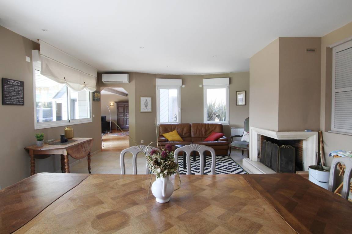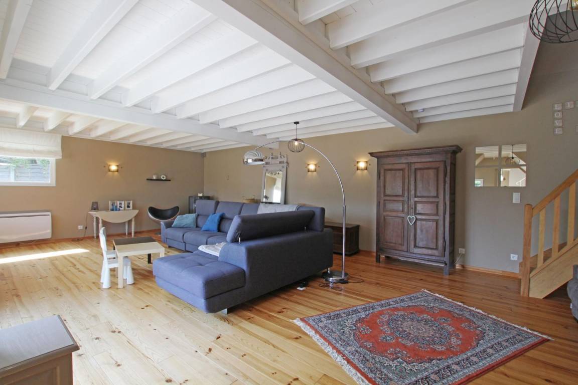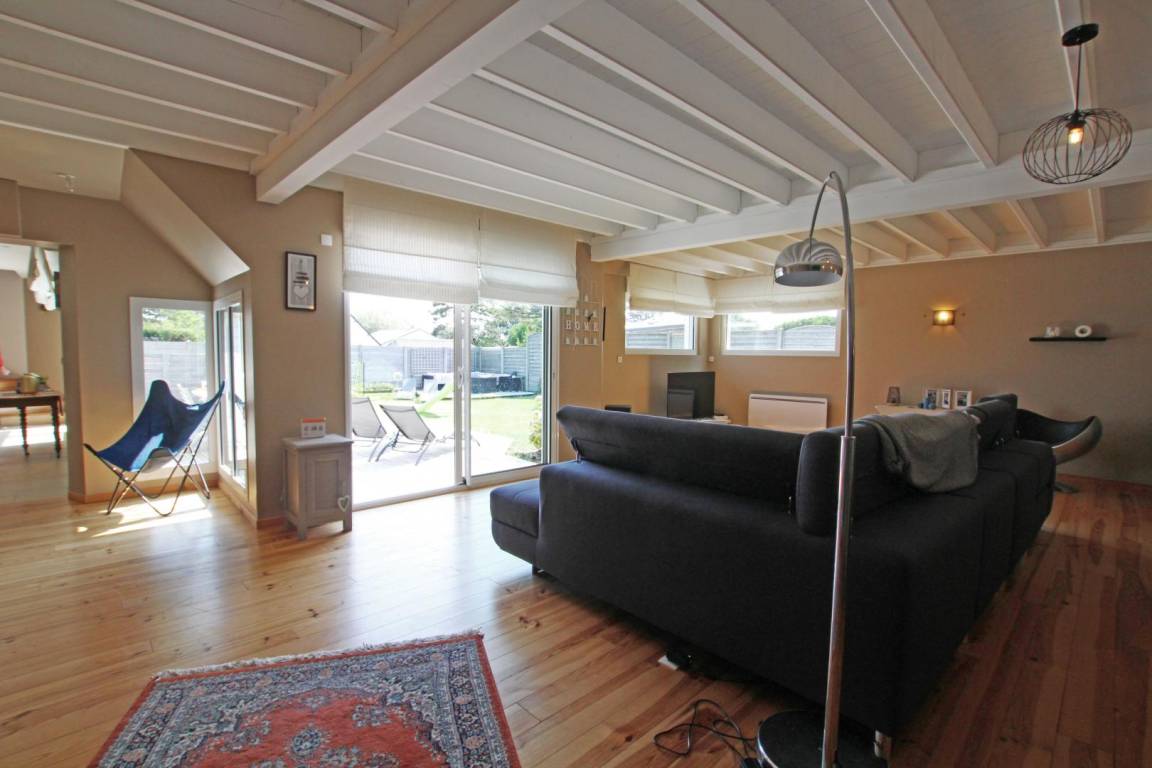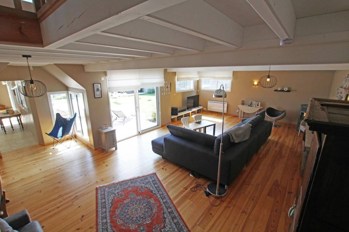 Erdgeschoss: Küche. Hintere Küche. Wohnzimmer (50m²) mit Kamin. Wohnzimmer (60m²). Kinderecke mit Spielen. Großer Flachbildfernseher und Soundbar. Schlafzimmer 1 (160 Betten) mit TV, Duschbad. TOILETTE. Obergeschoss: Schlafzimmer 2 (Schlafsaal: 2 140-cm-Betten und 1 Ausziehbett). Schlafzimmer 3 (160 Betten) mit Balkon. Schlafzimmer 4 (1 140-cm-Bett und 1 Ausziehbett). Schlafzimmer 5 (2 Einzelbetten) und Babybett (kleiner Meerblick). Badezimmer. TOILETTE. Geschirrspüler. Waschmaschine. Trockner. Aerothermische + elektrische Heizung (50 € inklusive). Bettwäsche wird gestellt. Betten gemacht. Miete von Badezimmerwäsche (5€/Person). Reinigungsservice (120 €). Ruderer bei der Landung. Babyausstattung. Kabellos. Eingezäunter, nicht einsehbarer Garten (810 m², Südlage) mit 2 Terrassen. Liegestühle. Hüpfburg, Tischtennis, Badminton, Darts, Rutsche und Holzhütte. 2 Fahrräder für Erwachsene. Garage.