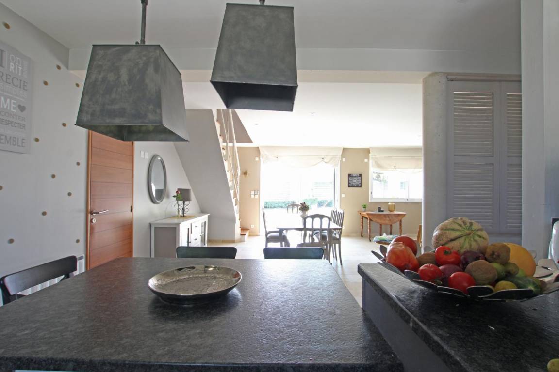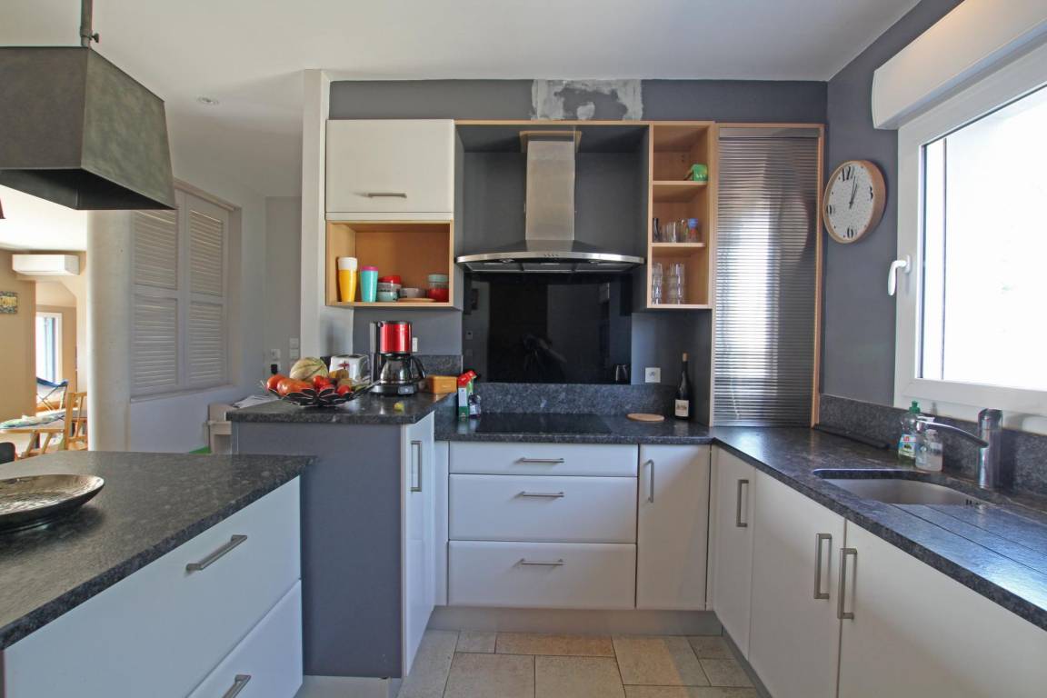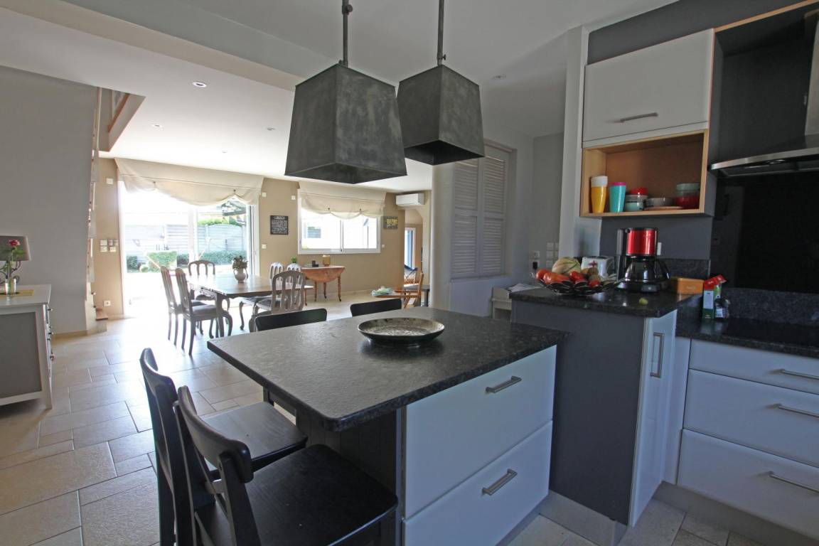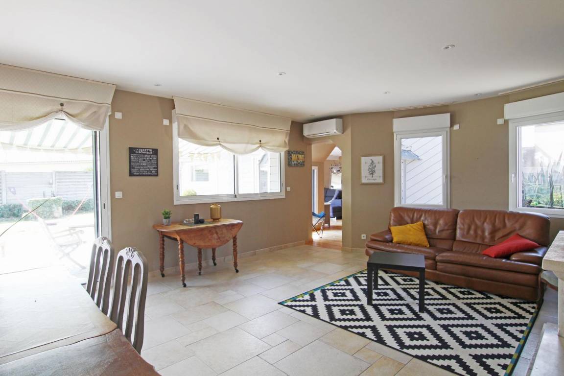 Erdgeschoss: Küche. Hintere Küche. Wohnzimmer (50m²) mit Kamin. Wohnzimmer (60m²). Kinderecke mit Spielen. Großer Flachbildfernseher und Soundbar. Schlafzimmer 1 (160 Betten) mit TV, Duschbad. TOILETTE. Obergeschoss: Schlafzimmer 2 (Schlafsaal: 2 140-cm-Betten und 1 Ausziehbett). Schlafzimmer 3 (160 Betten) mit Balkon. Schlafzimmer 4 (1 140-cm-Bett und 1 Ausziehbett). Schlafzimmer 5 (2 Einzelbetten) und Babybett (kleiner Meerblick). Badezimmer. TOILETTE. Geschirrspüler. Waschmaschine. Trockner. Aerothermische + elektrische Heizung (50 € inklusive). Bettwäsche wird gestellt. Betten gemacht. Miete von Badezimmerwäsche (5€/Person). Reinigungsservice (120 €). Ruderer bei der Landung. Babyausstattung. Kabellos. Eingezäunter, nicht einsehbarer Garten (810 m², Südlage) mit 2 Terrassen. Liegestühle. Hüpfburg, Tischtennis, Badminton, Darts, Rutsche und Holzhütte. 2 Fahrräder für Erwachsene. Garage.