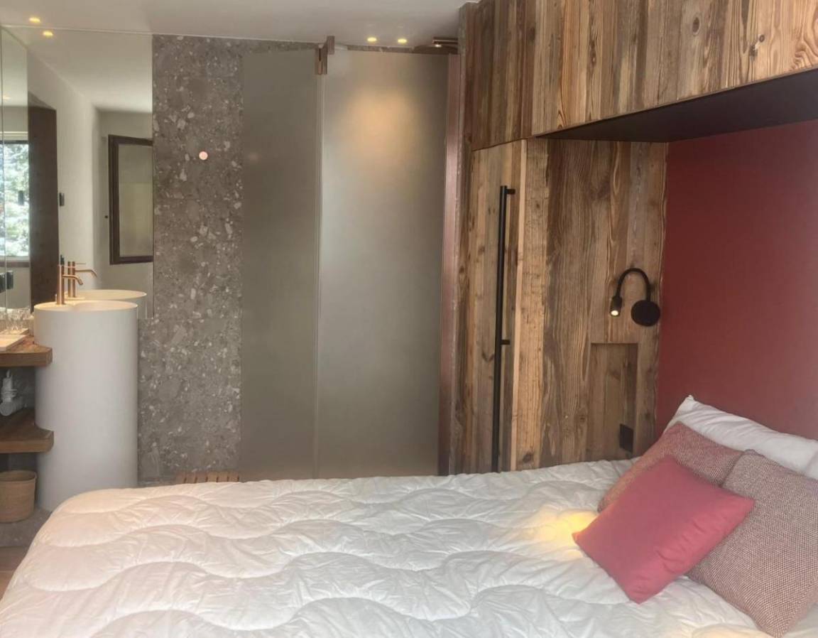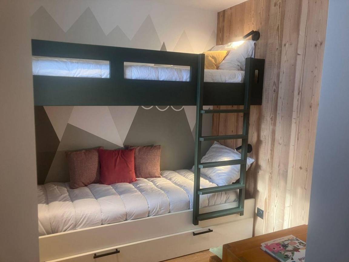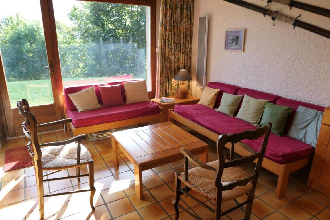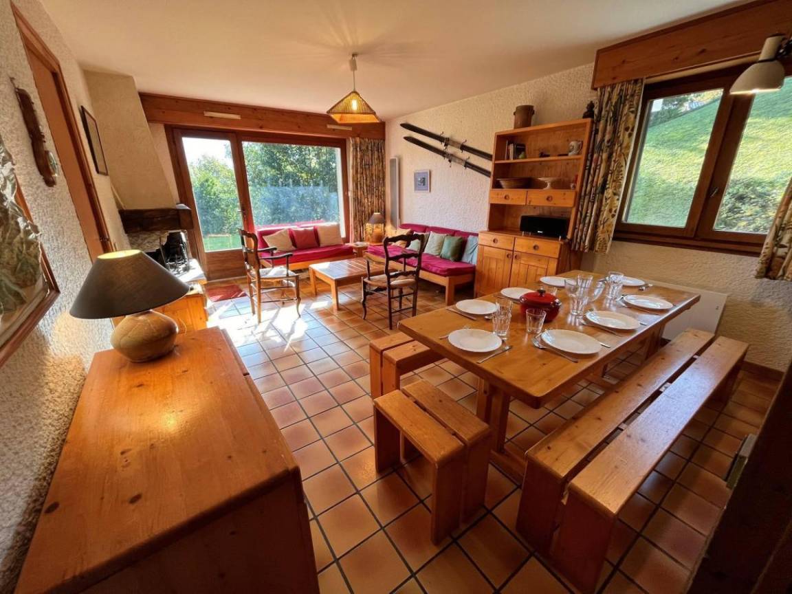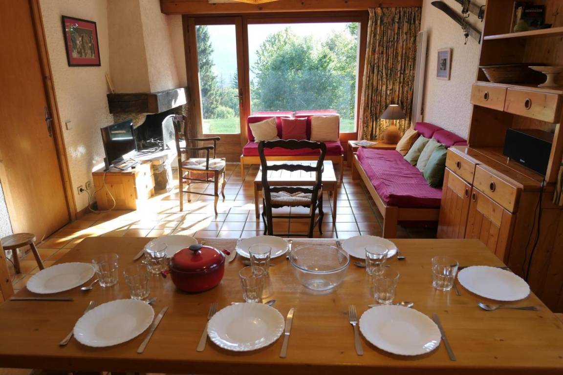 Fläche von ungefähr 67 m². Erdgeschoss. Orientierung : Ost. Blick berg (Mont-Blanc). Wohnzimmer mit Klappschlafcouch (140*190), TV. Schlafzimmer mit 2 Stockbetten (70*190), Ausziehbett (70*190). Schlafzimmer mit 2 zwei Einzelbetten (80*200). Schlafzimmer mit Doppelbett (160*200), . Küche mit Fonduegerät, Raclettegerät, Backofen, Geschirrspülmaschine, Mikrowellenherd, 4 elektronische Herdplatten, Kühlschrank. separates WC. Badezimmer mit Badewanne, Waschbecken, Waschmaschine. Terrasse. Die oberen Betten sind nicht für Kinder unter 6 Jahren geeignet.