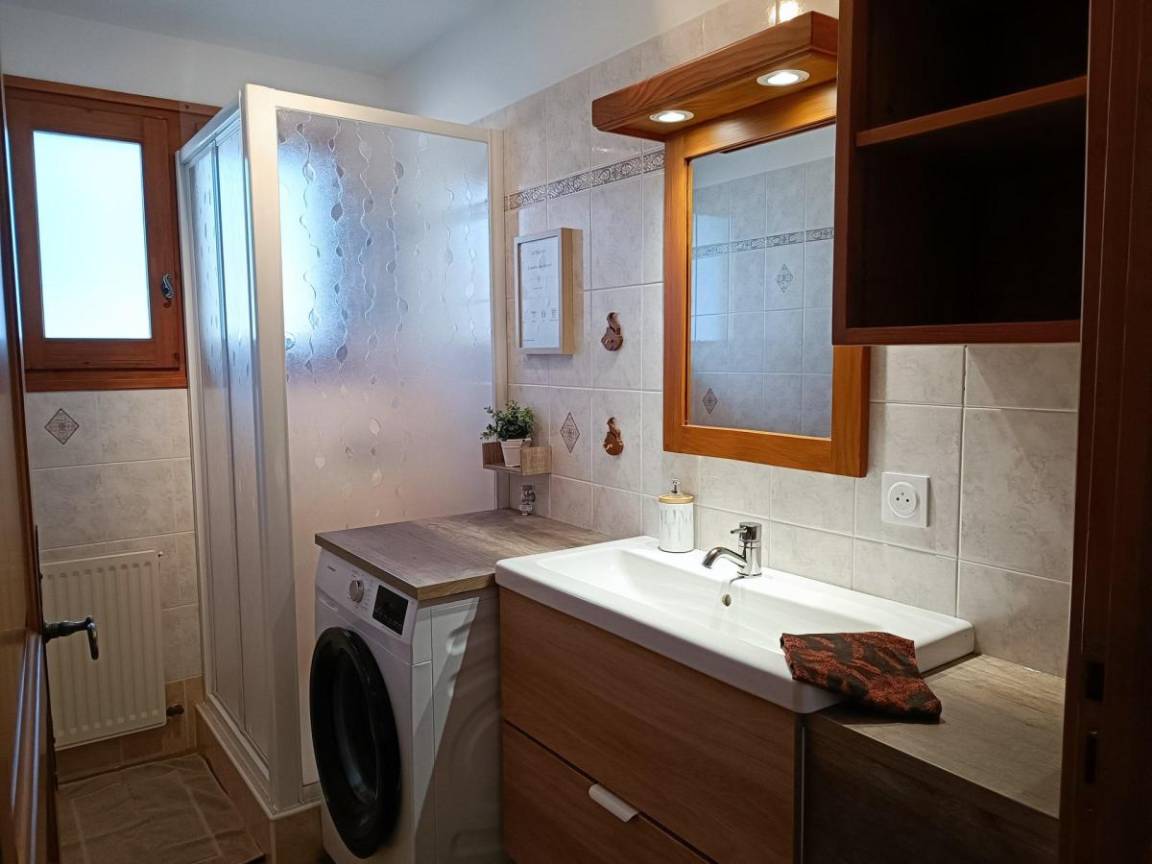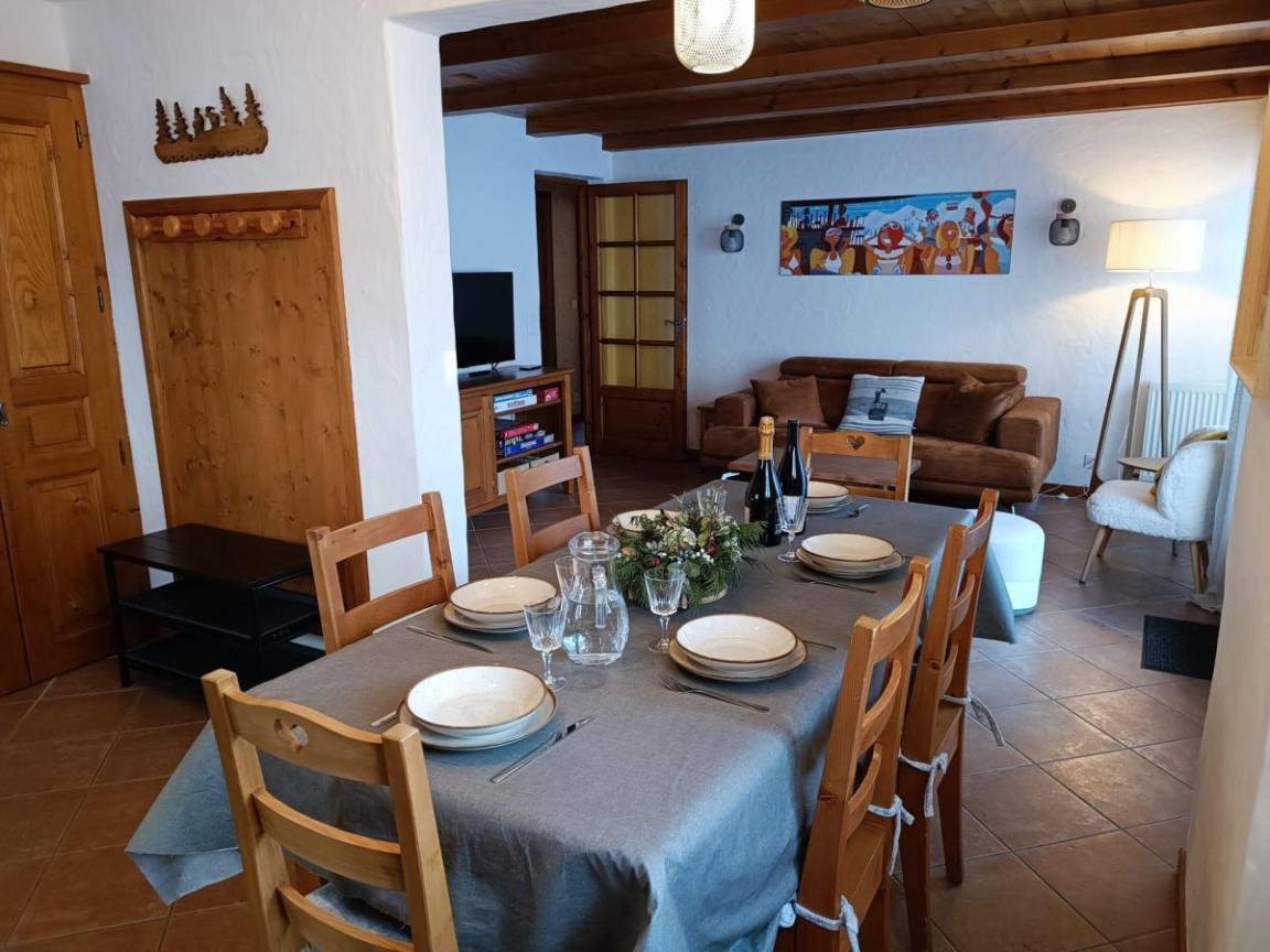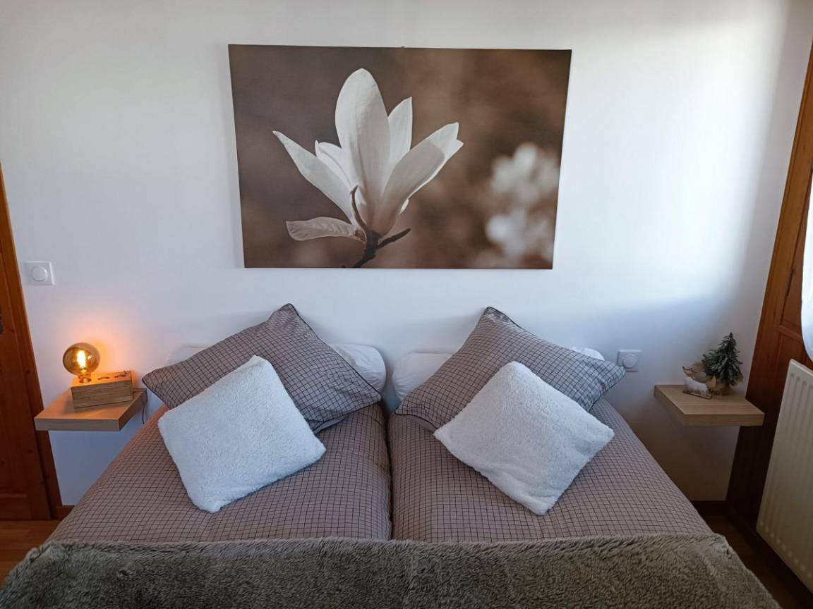 Es ist ein perfekter Kompromiss zwischen Ruhe, Zweckmäßigkeit und Zugänglichkeit. Fläche von ungefähr 74 m². Erdgeschoss. Orientierung : Ost, Süd. Blick berg (Mont-Blanc). Wohnzimmer mit Sofa, TV. Schlafzimmer mit Doppelbett (160*200). Schlafzimmer mit 2 Einzelbetten (90*190). Schlafzimmer mit 2 zwei Einzelbetten (80*190). Kochnische mit Fonduegerät, Raclettegerät, Wasserkocher, Kaffeemaschine (à filtre), Backofen, Geschirrspülmaschine, 3 Gasherdplatten, Kühlschrank. Waschräume mit Dusche, Waschbecken, Waschmaschine. Badezimmer mit Badewanne, Waschbecken. separates WC. Terrasse. 2 Parkplätze.