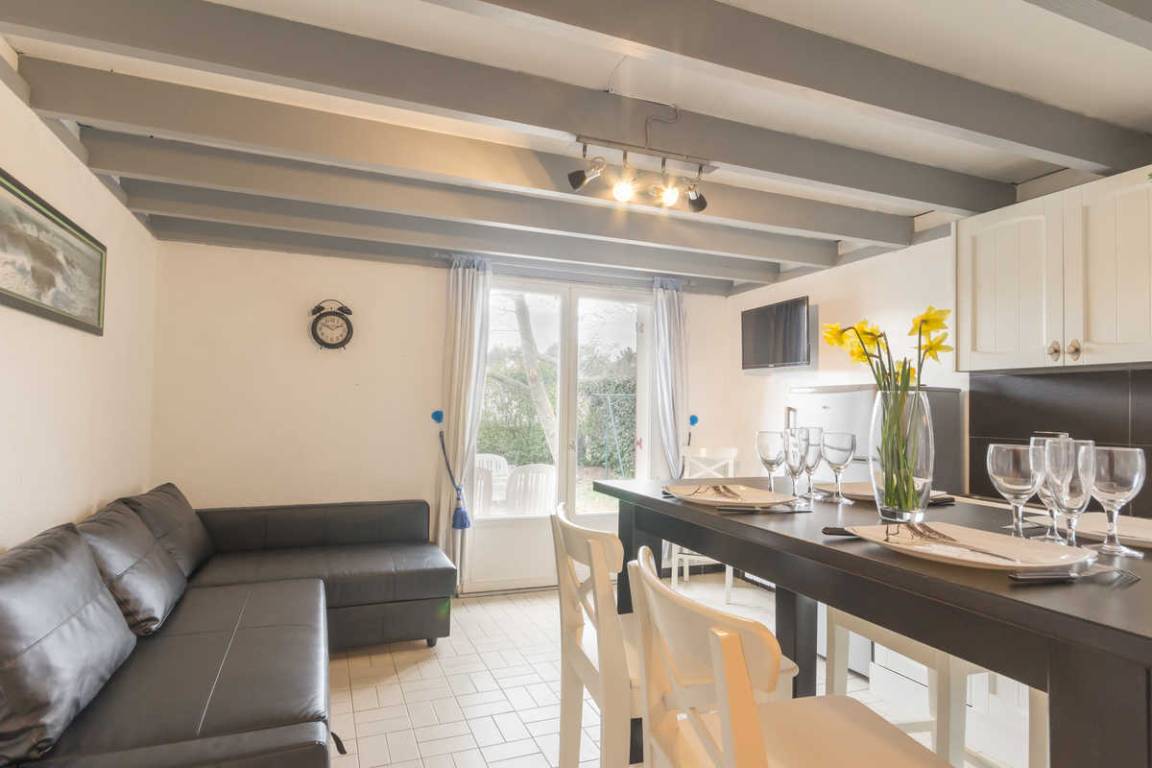 Verbringen Sie Ihren nächsten Urlaub in dem lebendigen und gastfreundlichen Ort Saint Gildas de Rhuys im Süd-Morbihan. Natürliches Küstengebiet und wunderschöne Landschaften. Wer das Meer liebt, ist hier richtig: die schönsten Strände der Halbinsel laden ein zum Baden, Faulenzen und Strandfischen. Außerdem: Golfplatz, Museen, Reiten, Wandern... Sie können tief durchatmen, der Urlaub beginnt! Ferienhaus in einer Tourismusresidenz gleich beim Meer, Geschäfte 5 Min. Zahlreiche Ausstattungen stehen zur Verfügung: Pool im Freien (geöffnet vom 1. Juli bis zum 15. September), Tischtennisplatte, Basketball, Boules-Platz. Ferienhaus: Erdgeschoss: Wohnbereich mit Küche und Essecke, Zugang zur Terrasse und einem kleinen geschlossenen Garten, Badezimmer und ein separates WC. 1. Stock: 2 Zimmer (1 Bett 140, 1 Bett 90). Nebenkosten inklusive.
