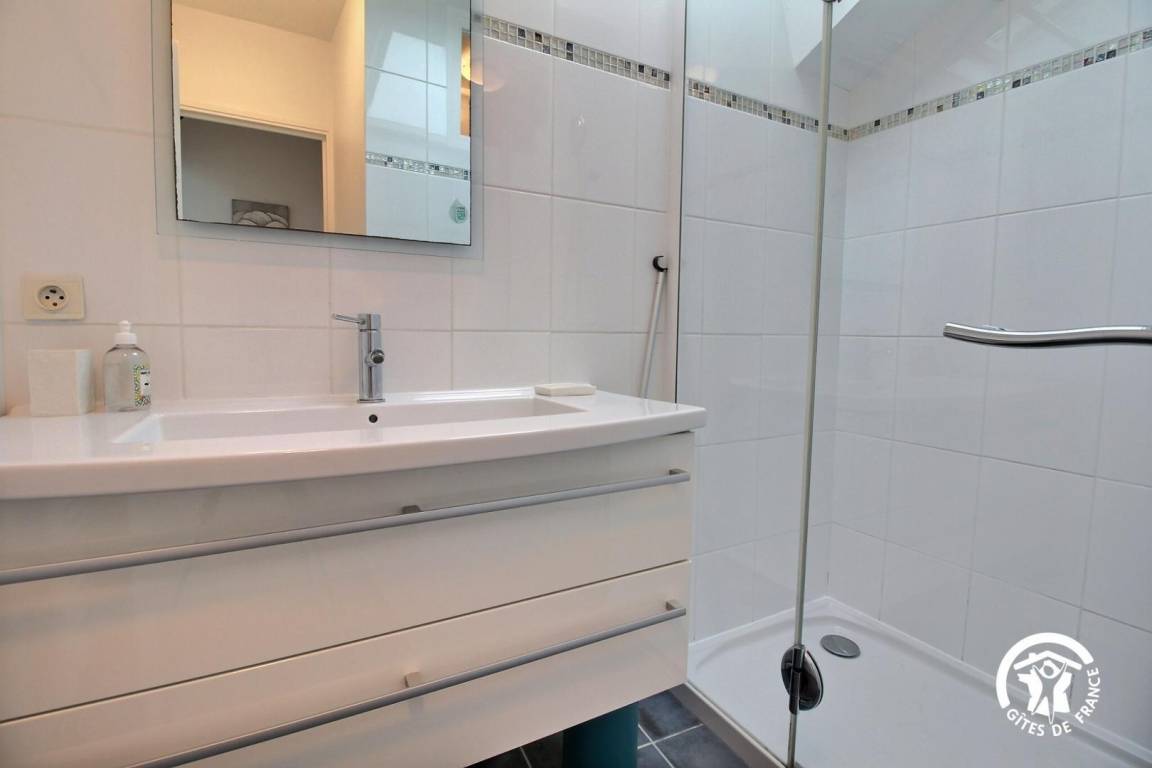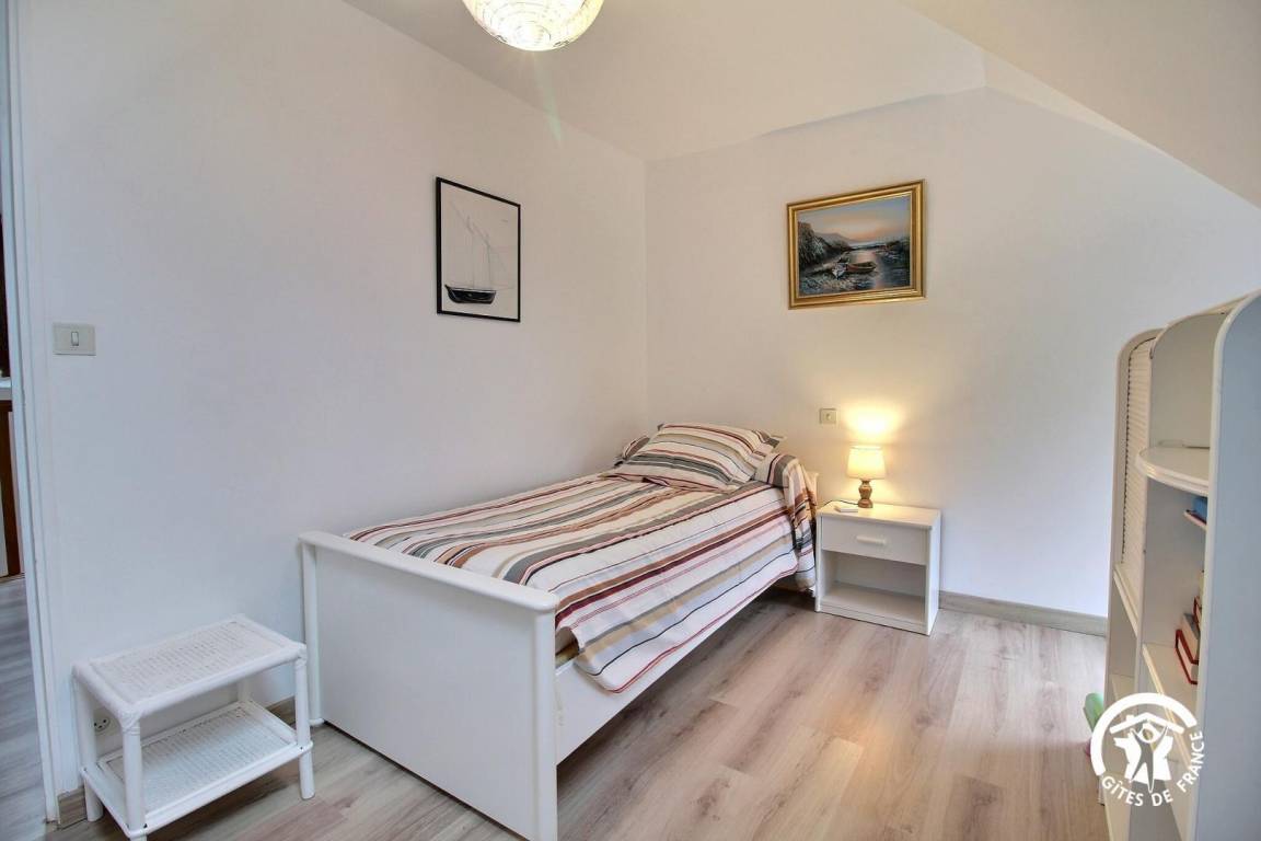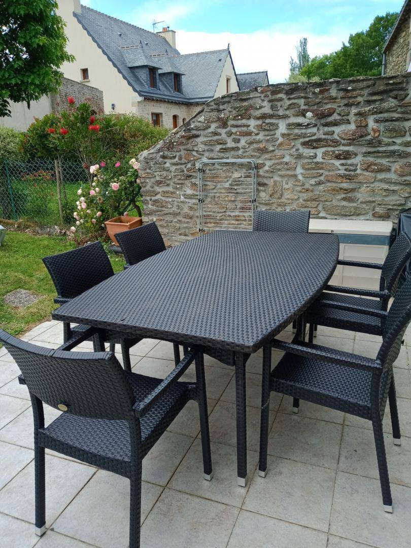 Draußen: ein eingezäunter Garten von 100m² mit einer nach Süden ausgerichteten Terrasse und einem privaten Parkplatz (vor dem Garten). Wenn Sie Bettwäsche mieten, sind die Betten bei der Ankunft gemacht. Gite neben zwei Wohnungen.