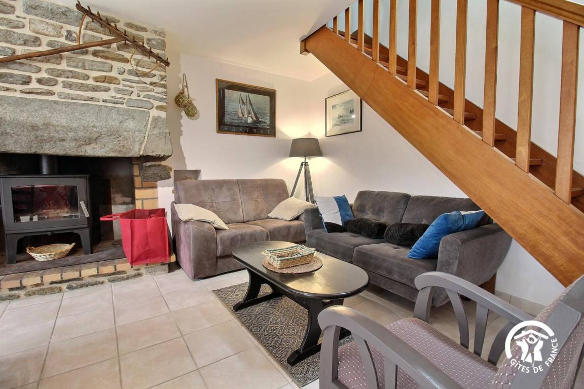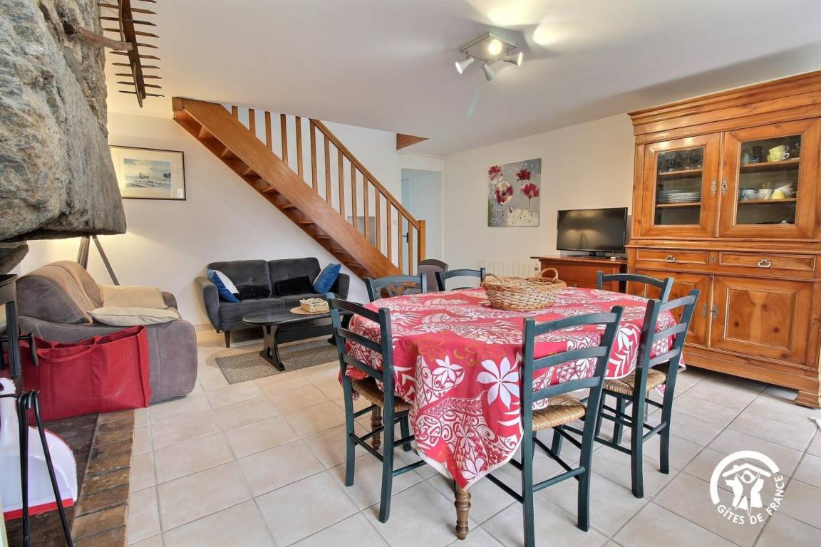 - Im Erdgeschoss haben Sie ein Wohnzimmer mit Wohnzimmer / Küche / Wohnzimmer mit Holzofen, ein Schlafzimmer (1 Bett 140), ein Badezimmer und eine separate Toilette.