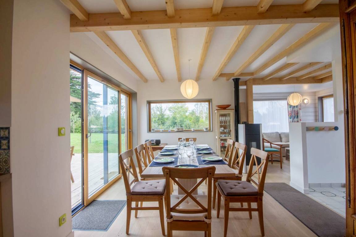 „Cette maison est très bien situé pour les randonnées à pieds et à vélos. La plage est à proximité. La maison est saine (par ses matériaux) et bien isolée. La ventilation est efficace. Les chambres silencieuses. Son orientation apporte beaucoup de lumière avec une vue sur un grand espace verdoyant.“