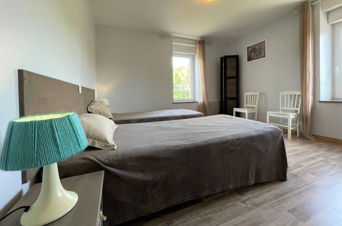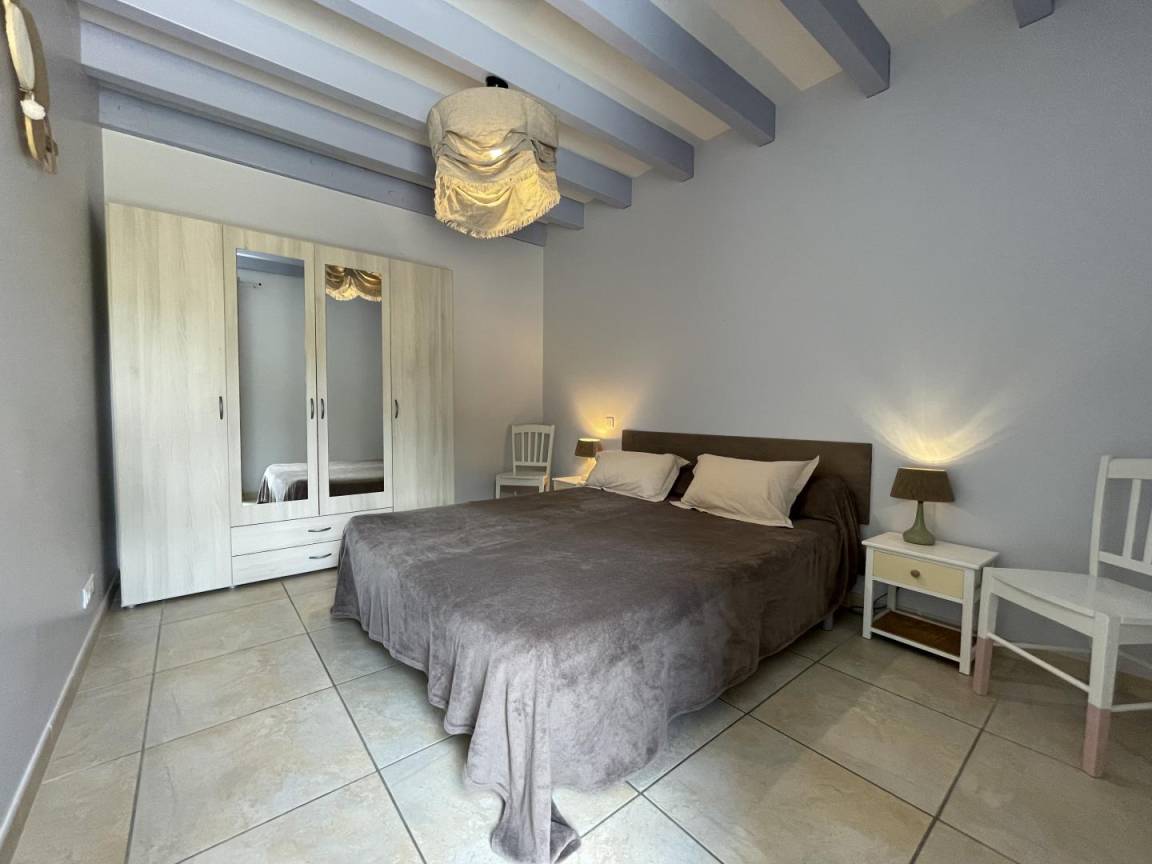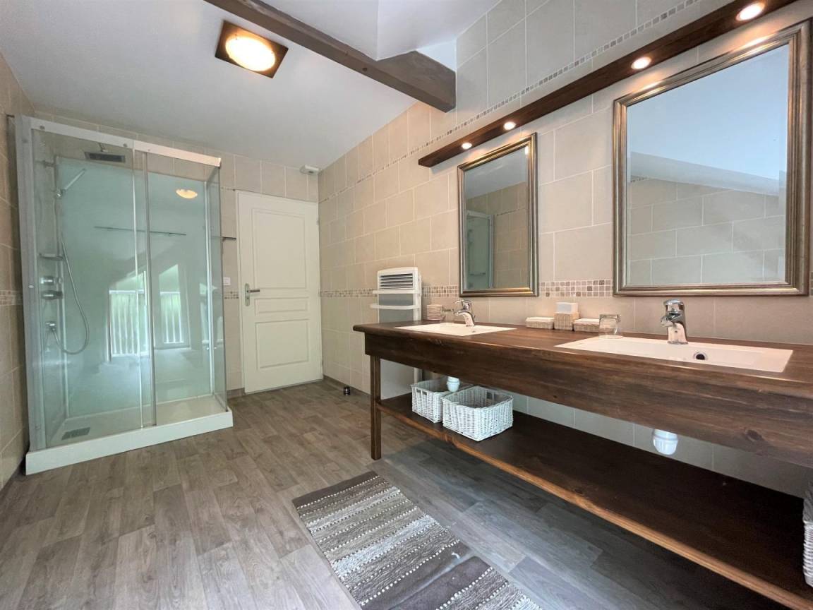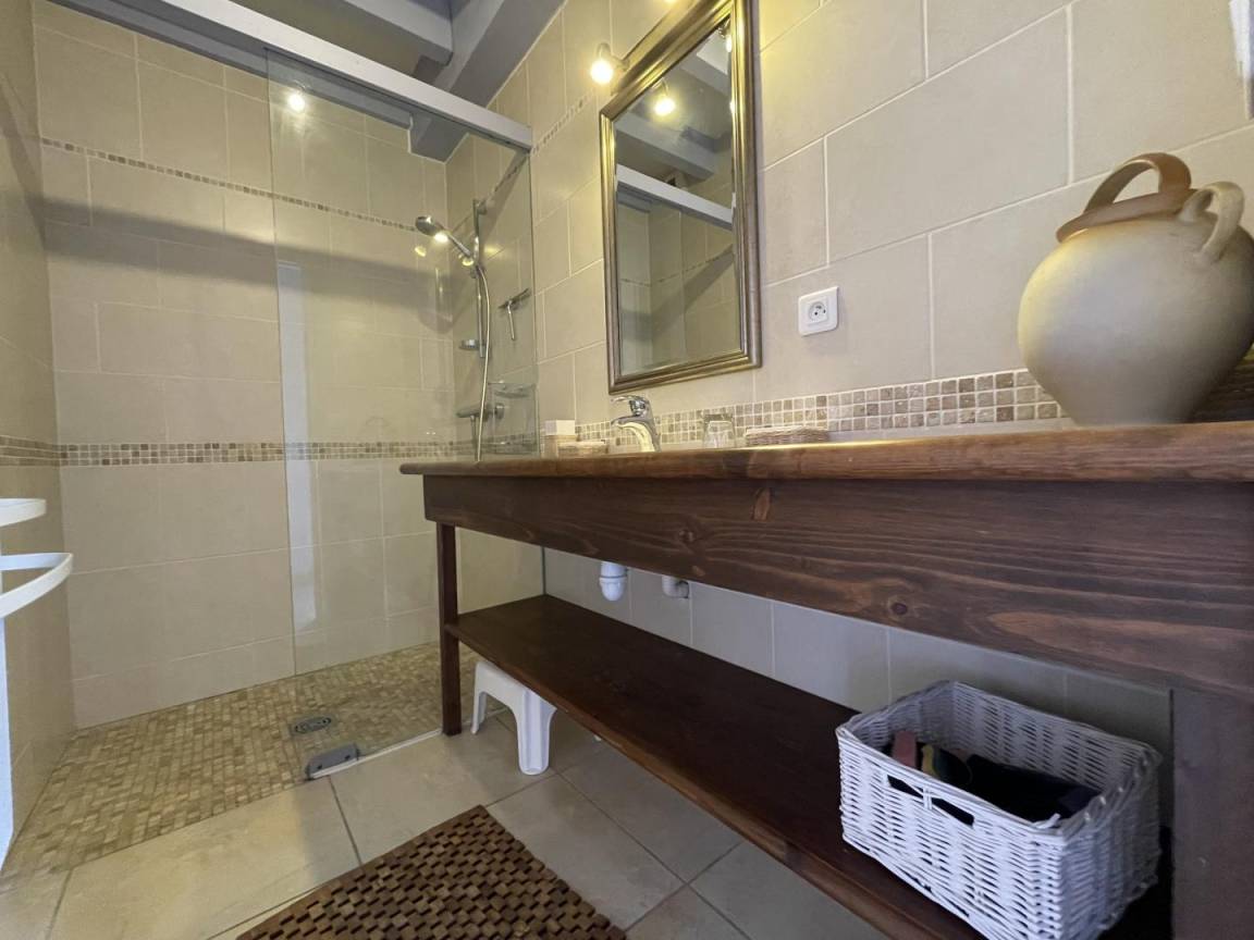 Bühne. 2 Schlafzimmer (2 90 cm Betten, 1 160 cm Bett, das in 2 Einzelbetten umgewandelt werden kann). Duschraum, WC. Mezzanine (Schlafsofa, Bibliothek).