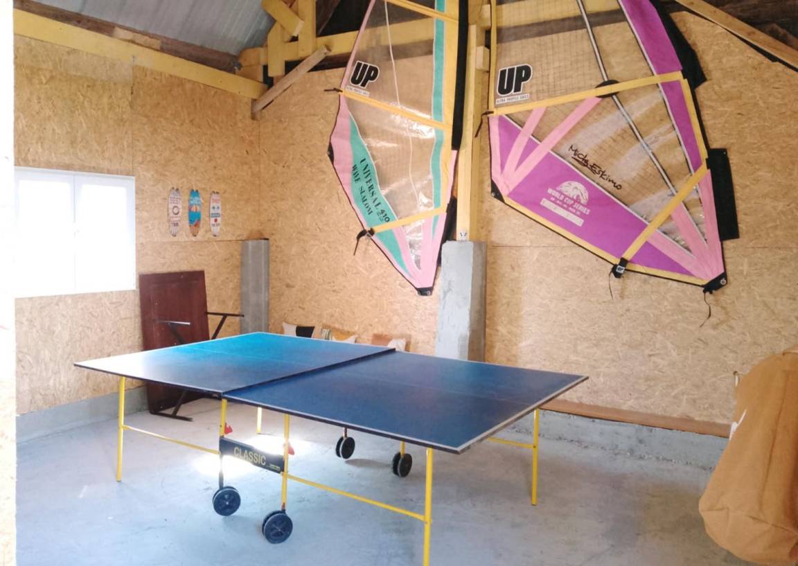 Einfamilienhaus. Im Erdgeschoss: Wohnzimmer mit Holzofen (TV, Glasfaser-Internet, Brettspiele). Zum Wohnzimmer offene Küche (Gasherd, Elektroofen, Espressomaschine, Mikrowelle, Geschirrspüler, Kühlschrank). Duschraum (Dusche, Handtuchwärmer, Föhn). WC. Waschküche (Waschmaschine, 2. Kühlschrank). Obergeschoss: Schlafzimmer 1 (Bett 140x190). Schlafzimmer 2 (2 Einzelbetten 80x190). Büro (kleiner Smart-Lautsprecher, zusätzliches Klappbett 90x190). WC. Außenbereich: Privater, nicht eingezäunter Garten. Durch ein Tor gesicherter Innenhof. Parkplatz. Terrasse. Gartenmöbel. Liegestühle. Spielzimmer in einem Außenanbau (Tischtennis, Darts, Molky). Elektroheizung inklusive. Nutzung des Holzofens nach Absprache mit dem Eigentümer (Verbrauchsmaterialien werden gestellt). Alle Gebühren inklusive. Bettwäsche und Handtücher sind optional. Reinigung gegen Aufpreis. Babyausstattung.