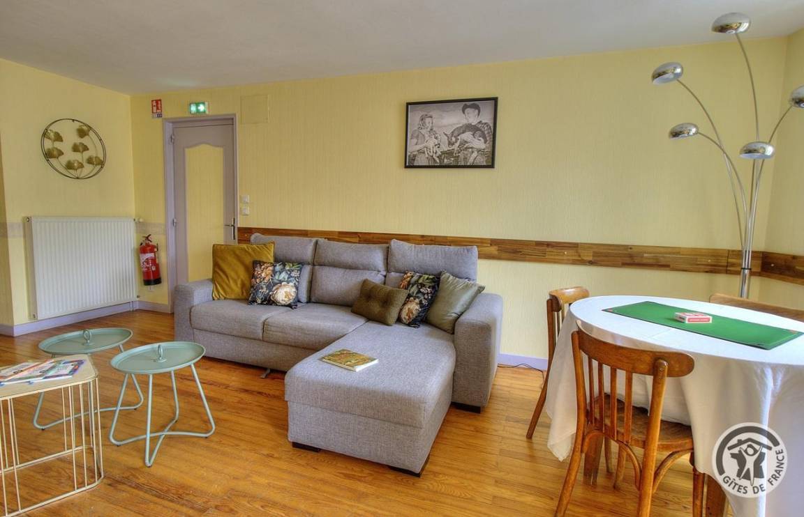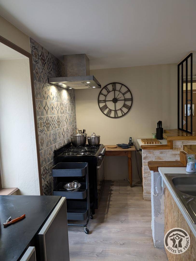 „Gîte très bien agencé pour favoriser les repas et les jeux en groupe. Les salons et les chambres invitent à plus d'intimité, au repos. L'ensemble est agréable, très propre, bien chauffé en hiver, fonctionnel. Le four nous a permis de faire des gratins, mais pas de pâtisserie digne de ce nom. Au village, vous trouverez une aire de jeux pour enfants, un city avec terrains de foot, basket..., une boulangerie, un Proxi, un coiffeur et un marché de produits frais et locaux le mardi matin. J'ai eu aussi la joie de participer à la messe de Noël au village. Tout proche du village, un club d'équitation. La région est belle, propice à la rando, et même au VTT pour ceux qui ont du souffle (il y a du dénivelé !) Élodie, la propriétaire, est charmante, réactive à toute demande. Nous ne pouvons que vous recommander ce gîte.“