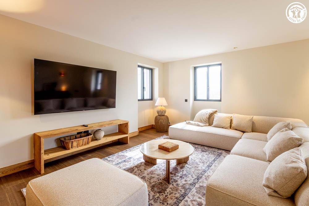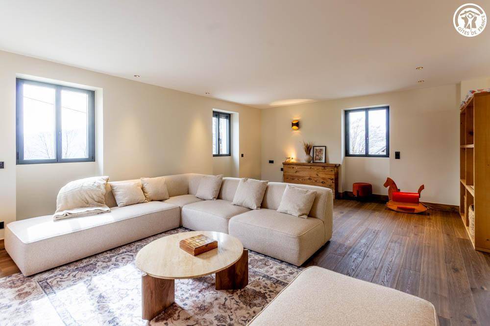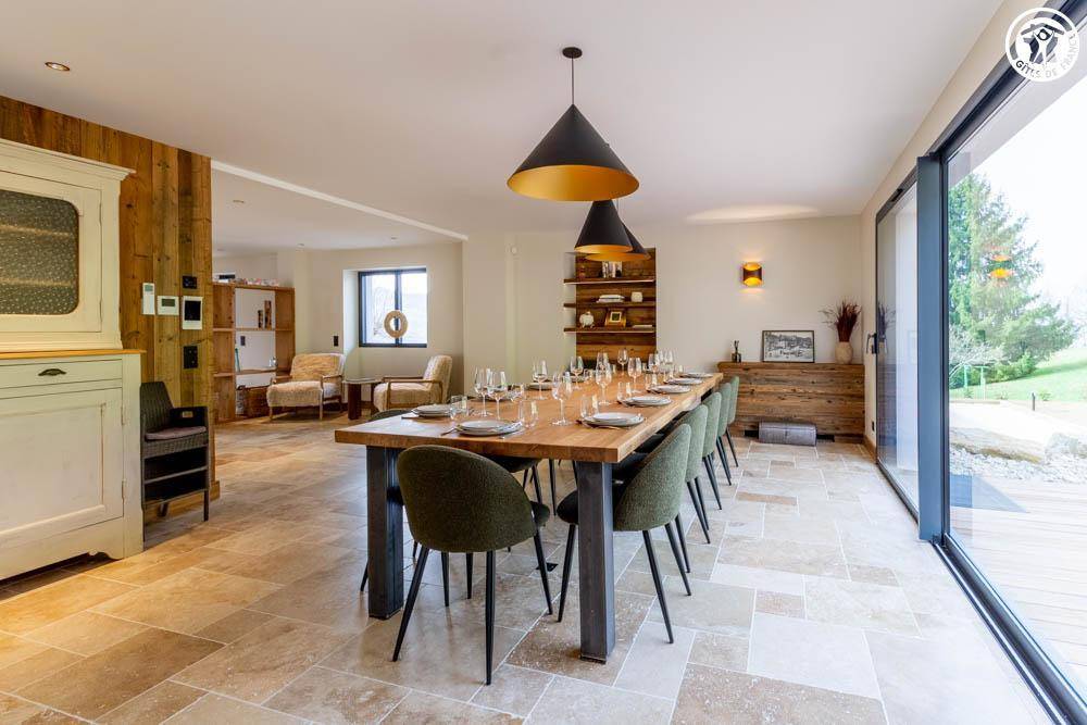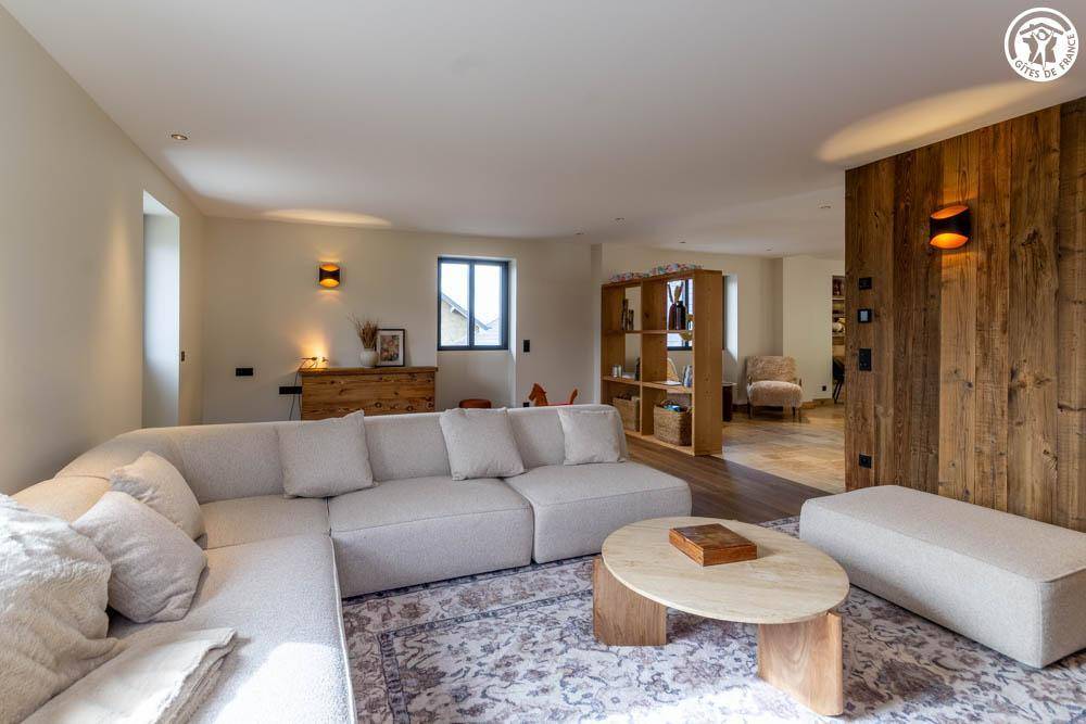 Nur 700 Meter von den ganzjährig geöffneten Geschäften von Saint-Jean-d'Arvey und direkt an der Straße nach La Féclaz gelegen, wurde diese ehemalige Scheune komplett in ein geräumiges, lichtdurchflutetes und luxuriöses Zuhause verwandelt. Das großzügige Wohnzimmer öffnet sich zu einer großen, möblierten Westterrasse mit Blick auf den Mont Peney. Ein Whirlpool im Freien lädt zum Entspannen und Genießen der Aussicht ein. Für einen unbeschwerten Aufenthalt ist alles inklusive: Bettwäsche, Handtücher und Haushaltswäsche werden gestellt, und die Betten sind bei Ihrer Ankunft bezogen. Zwei private Parkplätze bieten Platz für bis zu fünf Autos.