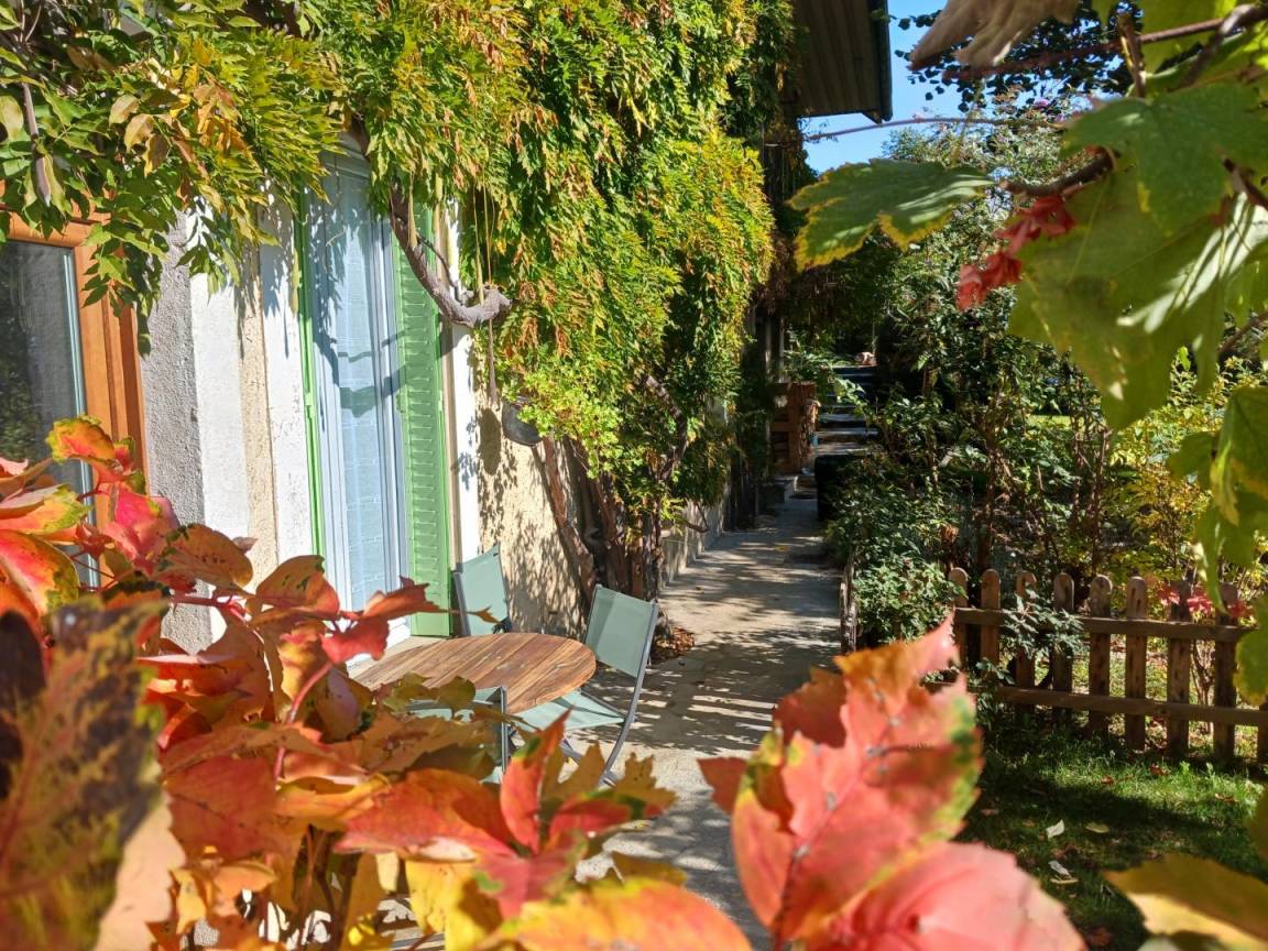Einstöckige Wohnung im Erdgeschoss des Hauses der Eigentümer mit privatem Garten, separatem Eingang: Wohnküche mit Wohnzimmer (1 Stufe zur Küche - 1 Doppelschlafsofa 140x190 cm), 1 Schlafzimmer (1 Doppelbett 160x200 cm), Badezimmer (Dusche + WC). 2 private Parkplätze. Ski-/Fahrradraum.