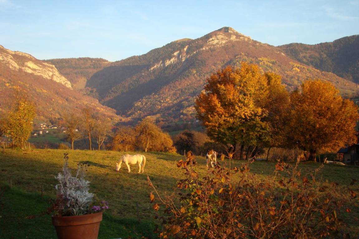 Ferienwohnung im 1. Stock im Haus der Eigentümer: großes Dachgeschoss von 43 m² (1 Doppelbett 160 x 200 cm + 1 Einzelbett), gemeinsame Waschmaschine, WLAN, Badezimmer (Dusche). Bettwäsche inklusive + gemachte Betten + Hauswäsche inklusive. Privater eingezäunter Garten. Ski La Féclaz/Savoie Grand Revard 11 km, Les Aillons 17 km, Le Margériaz 24 km. Langlauf 11km. Thermalbäder und Landschaftssee 8 km. Schwimmbad 8km. Golf 13 km. Wohnfläche: 97m² (inkl. Dachböden).