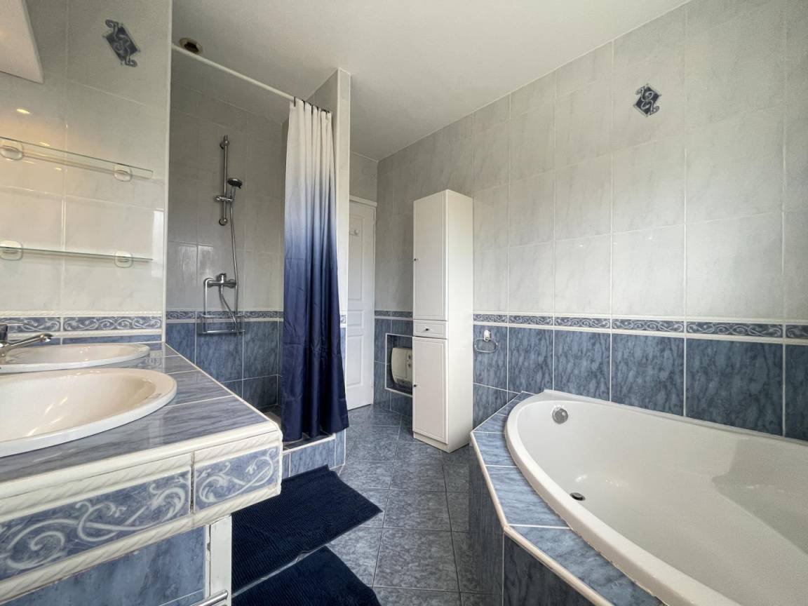 - ein Badezimmer mit Dusche und Eckbadewanne