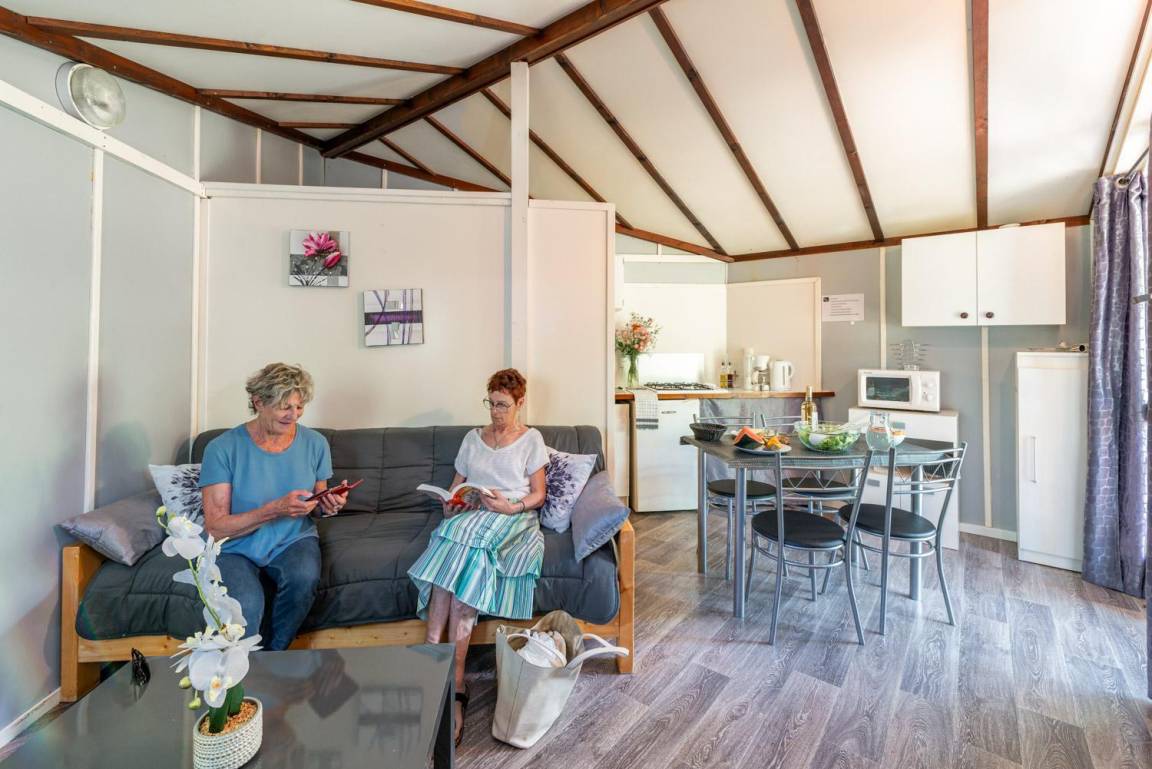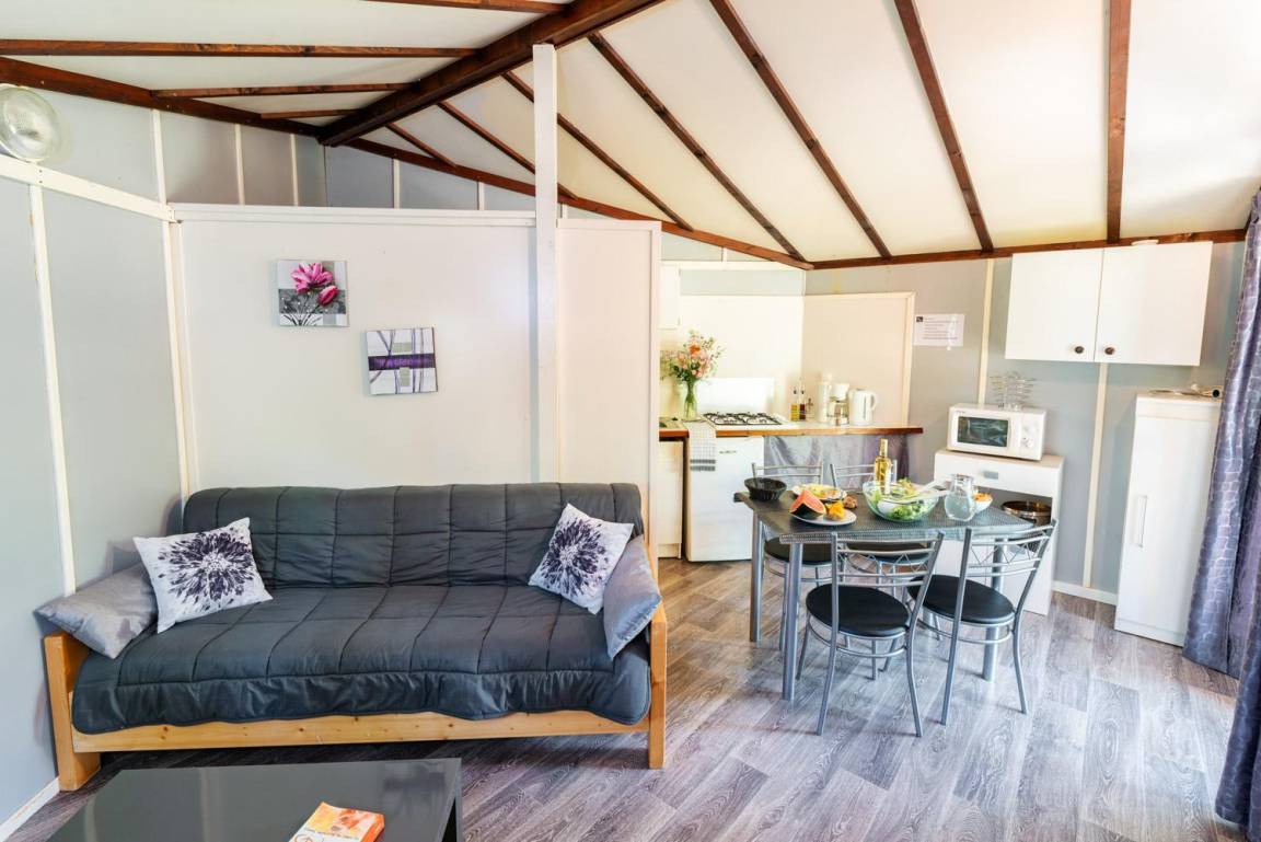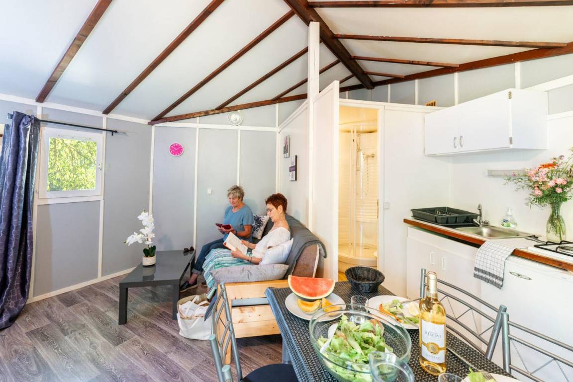 „Très bon séjour dans un environnement naturel, on n'a pas l'impression qu'il y a du monde autour car les chalets sont configurés pour ne pas être les uns sur les autres. Personnel agréable, disponible et à l'écoute. Très propre, seul bémol: Frigo trop petit et pas de vrai four, du coup on ne peut rien cuire avec le micro onde et il faut refaire les courses pour du frais tous les deux jours.“