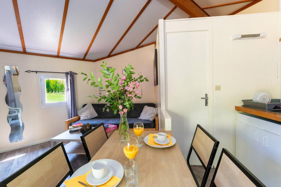 „Une petite équipe vraiment incroyable, disponible, agréable et trés professionnelle. Chalet bien optimisé, rien ne manque pour quelques jours mais un peu vieillot vu le prix. Literie total confort, linge de lit vraiment propre. Réservation sur le site rapide et facile. Ménage à l'arrivée à revoir. Cadre magnifique, domaine calme et propre parfait en famille avec jeunes enfants.“