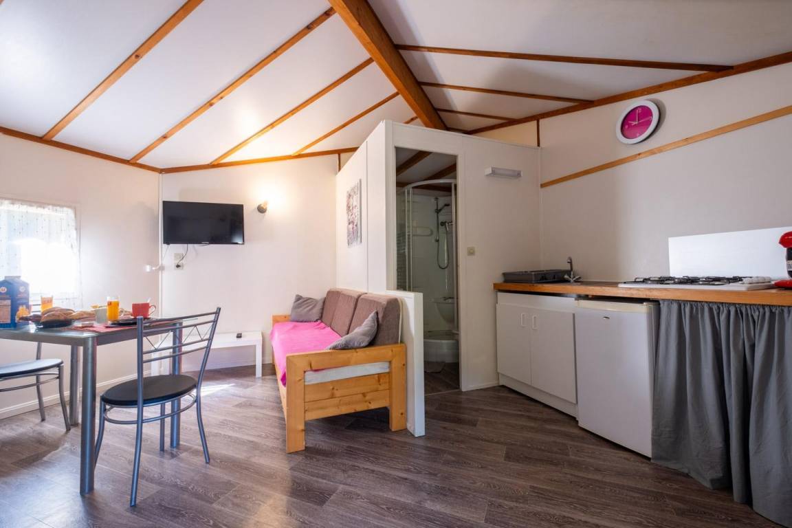 „Séjour très agréable, familial et au calme. Propriétaires très sympathiques. Très bon accueil. Cependant les chalets manquent de rénovation. Un peu vieillots et il fait très chaud en plein été. Quelques travaux et ça sera parfait!“