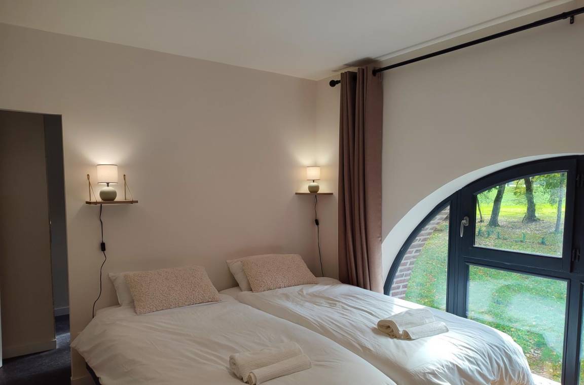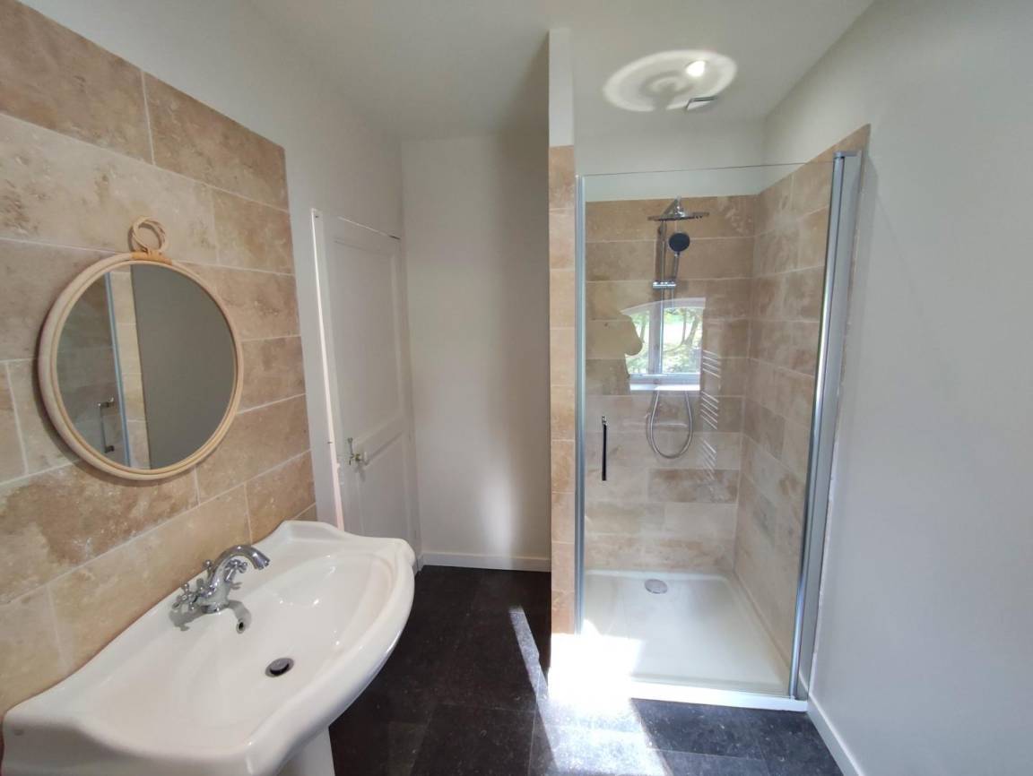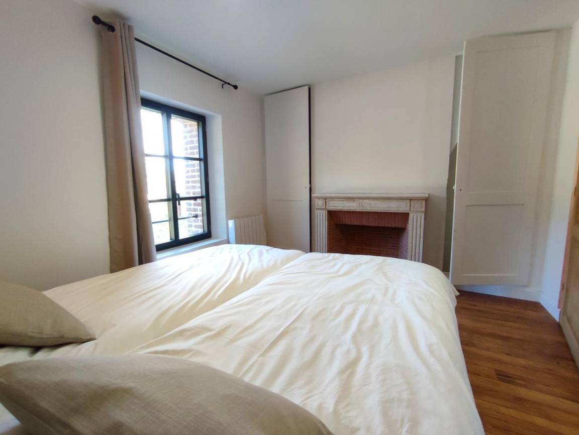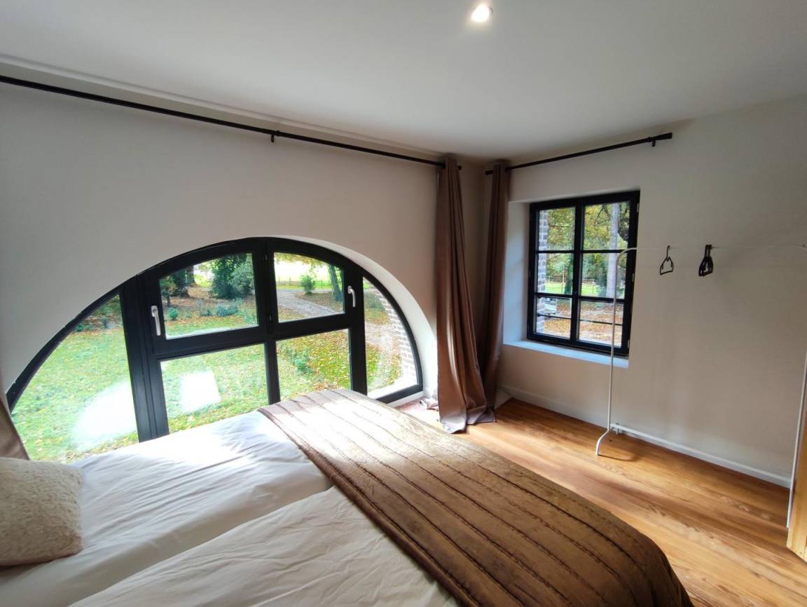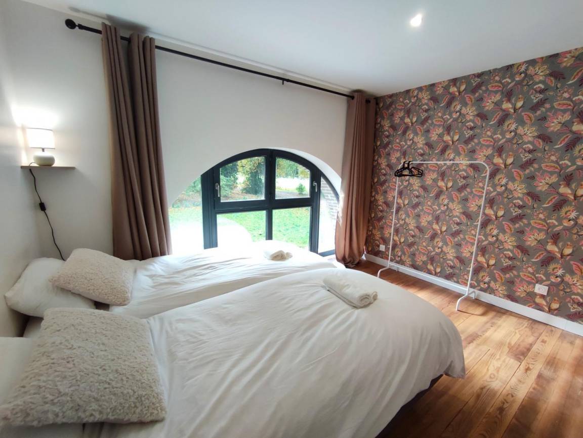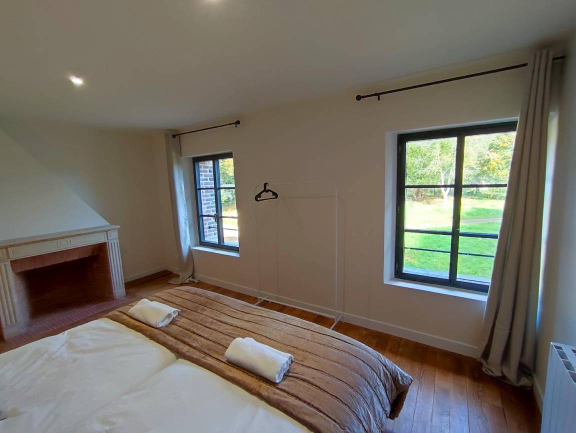 „The house is perfect. It’s light and airy, spacious, comfortable and tastefully decorated. All of the bedrooms are a good size, very comfortable and have en suite facilities, whilst the master bedroom is vast. We were a group of ten, but a group of fourteen would have no problem staying here as the ground floor is large and open plan with plenty of room for dining around the large table and relaxing in front of the log fire in the lounge. The kitchen is well equipped for cooking for large groups - two ovens, two dishwashers, a huge fridge (with another outside), large pots and pans, etc. There’s even a laundry room. The setting is ideal. It’s very quiet and surrounded by a wood which has a lovely two-mile circular walk. The location is ideal. It’s a short drive into Rouen and the coastal delights of Honfleur and Deauville are only an hour away. One day we even took the train (1hr 15mins) from Rouen to Paris. Any queries we had, the owner got back to us straight away. We were there with a group of old (in every sense) friends, plus our son with our granddaughter (three and a half) who adored the place as much as the old fogies. It is difficult to fault the place and because it’s so easy to get to from the U. K. - only two-hours from Calais - we’d certainly stay here again. But one piece of advice I would give, the freezer is located in the cupboard under the stairs!“