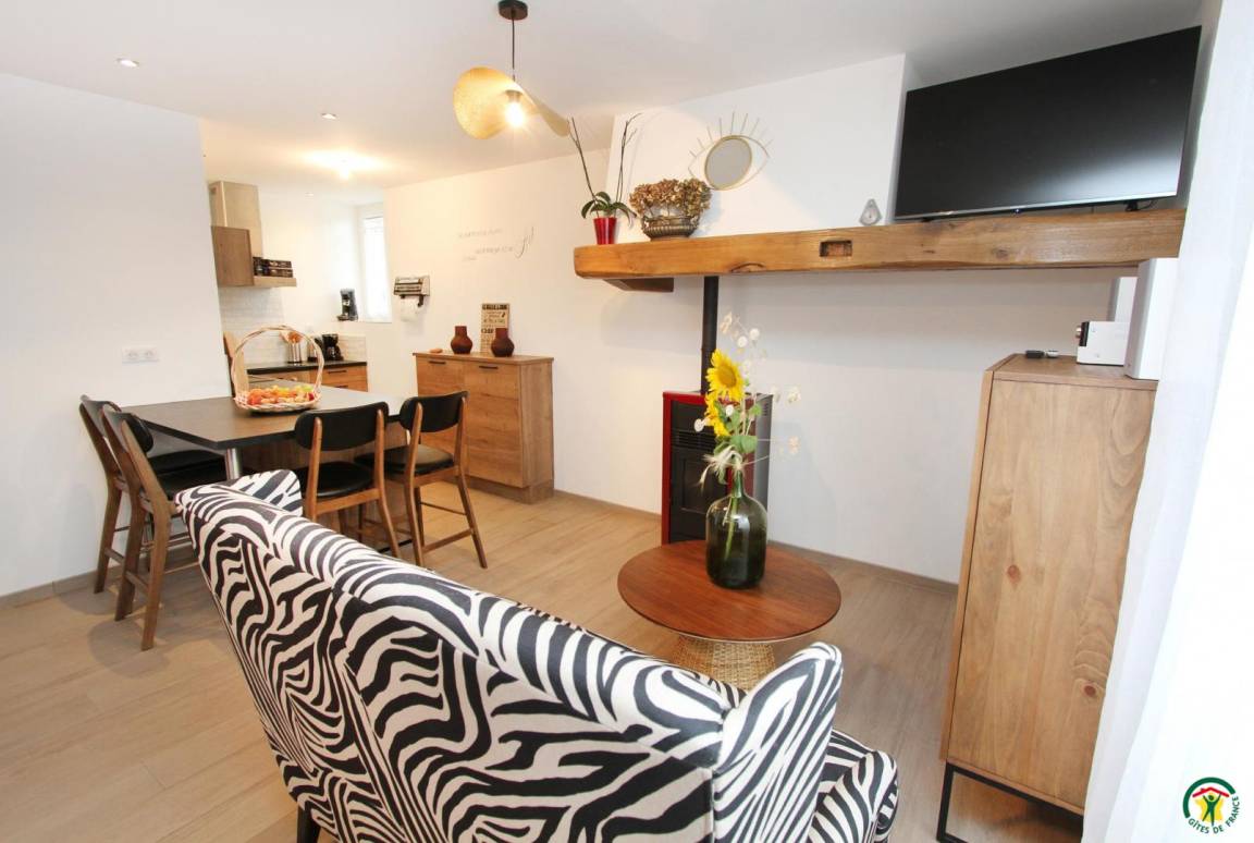„Gite très bien équipé et rénové avec beaucoup de soin et de goût. Nous y avons passé une semaine très agréable et reposante, en pleine nature. Seul petit bémol: Un accès non direct à la terrasse depuis la cuisine, même si nous avons pu facilement déplacer la table pour être plus proches. Les gros plus: La temperature très agréable en cas de canicule et une salle de jeux très bien équipée !“